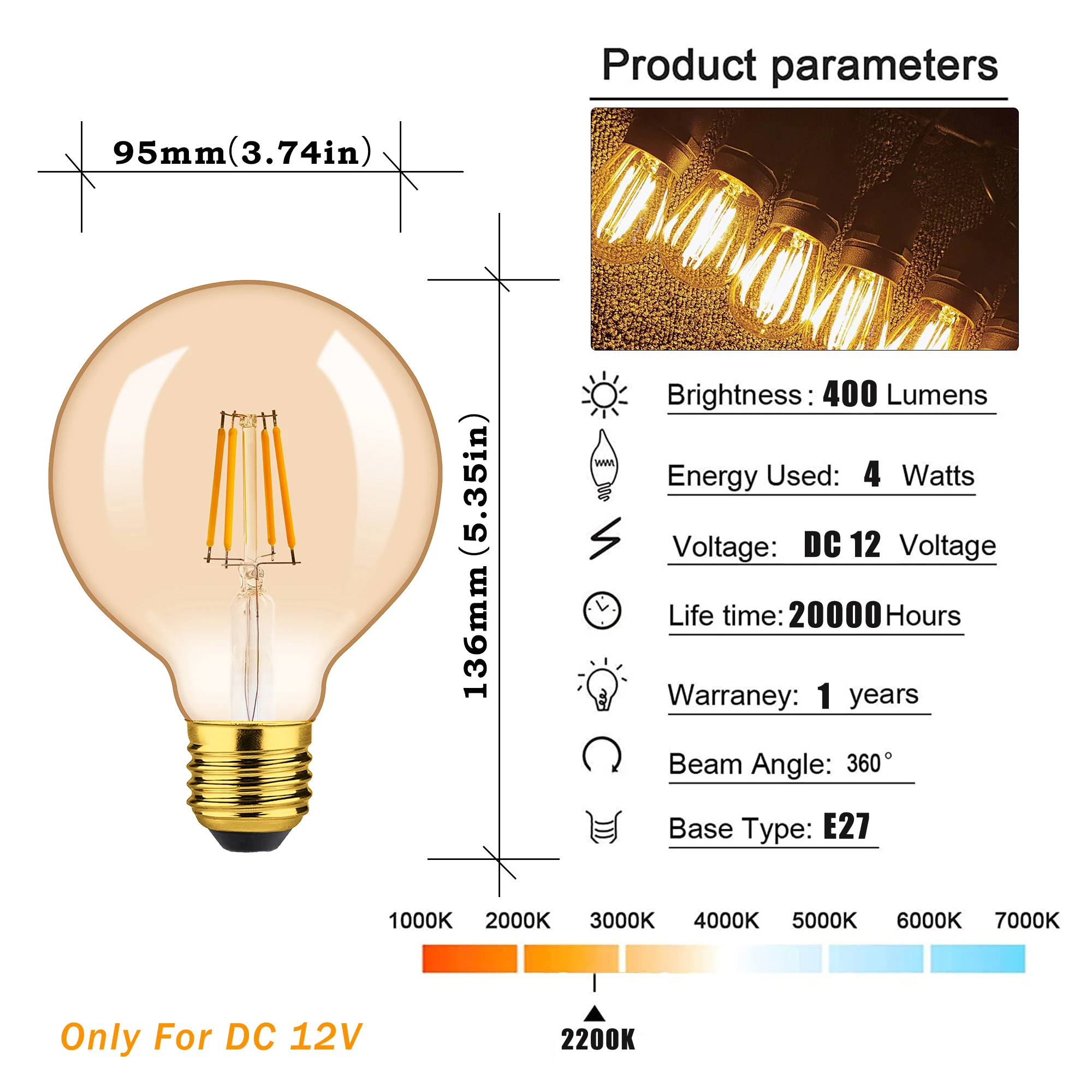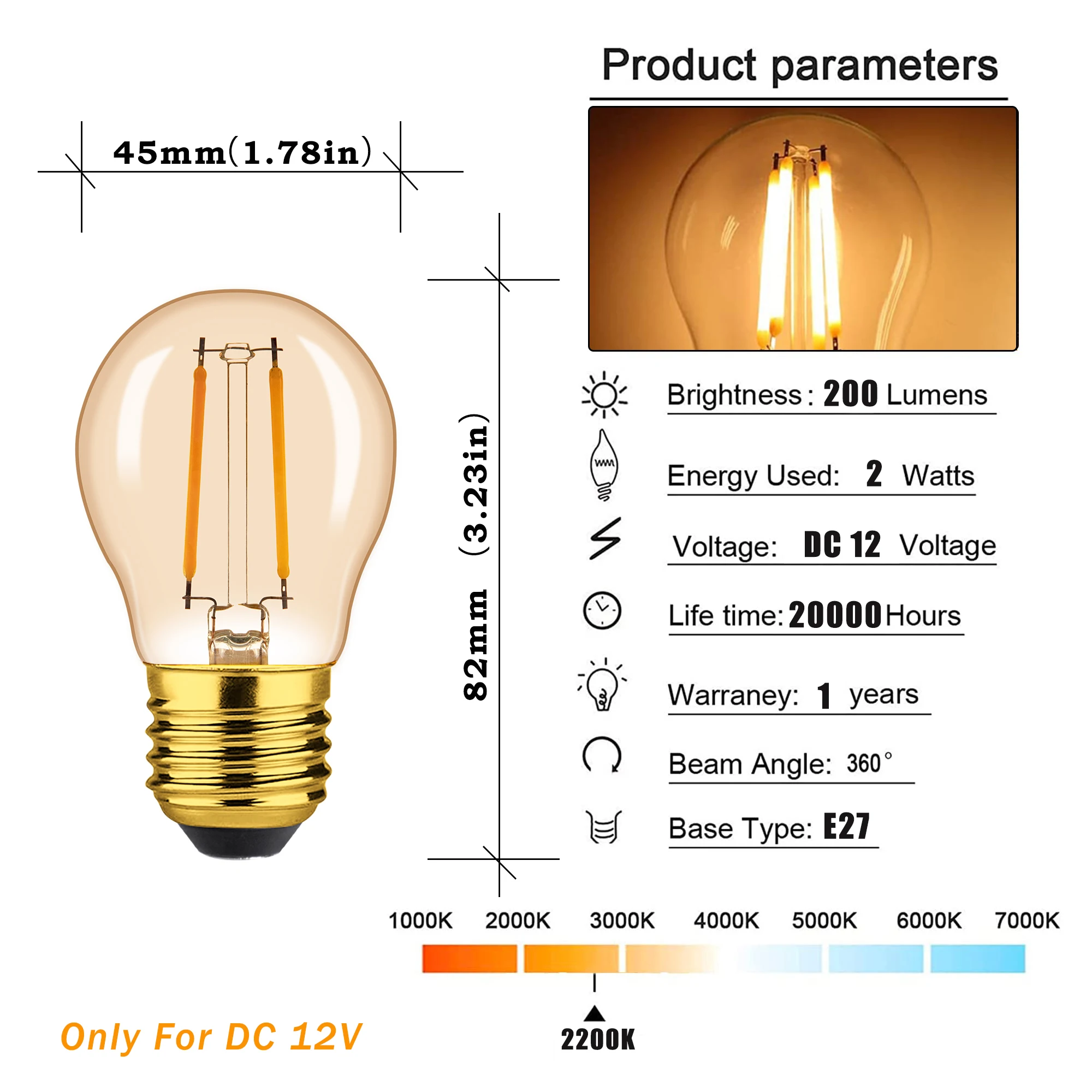 L’ampoule à filament LED basse tension est uniquement applicable lorsque les volts d’entrée sont DC 12V, faisant