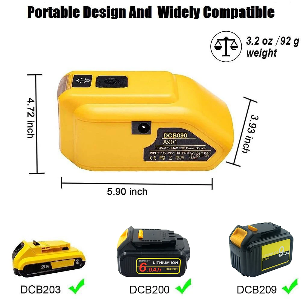 - Pour tous les outils DeWalt XR Li-Ion 18V et toute la gamme d’outils DeWalt 20-Volt Max