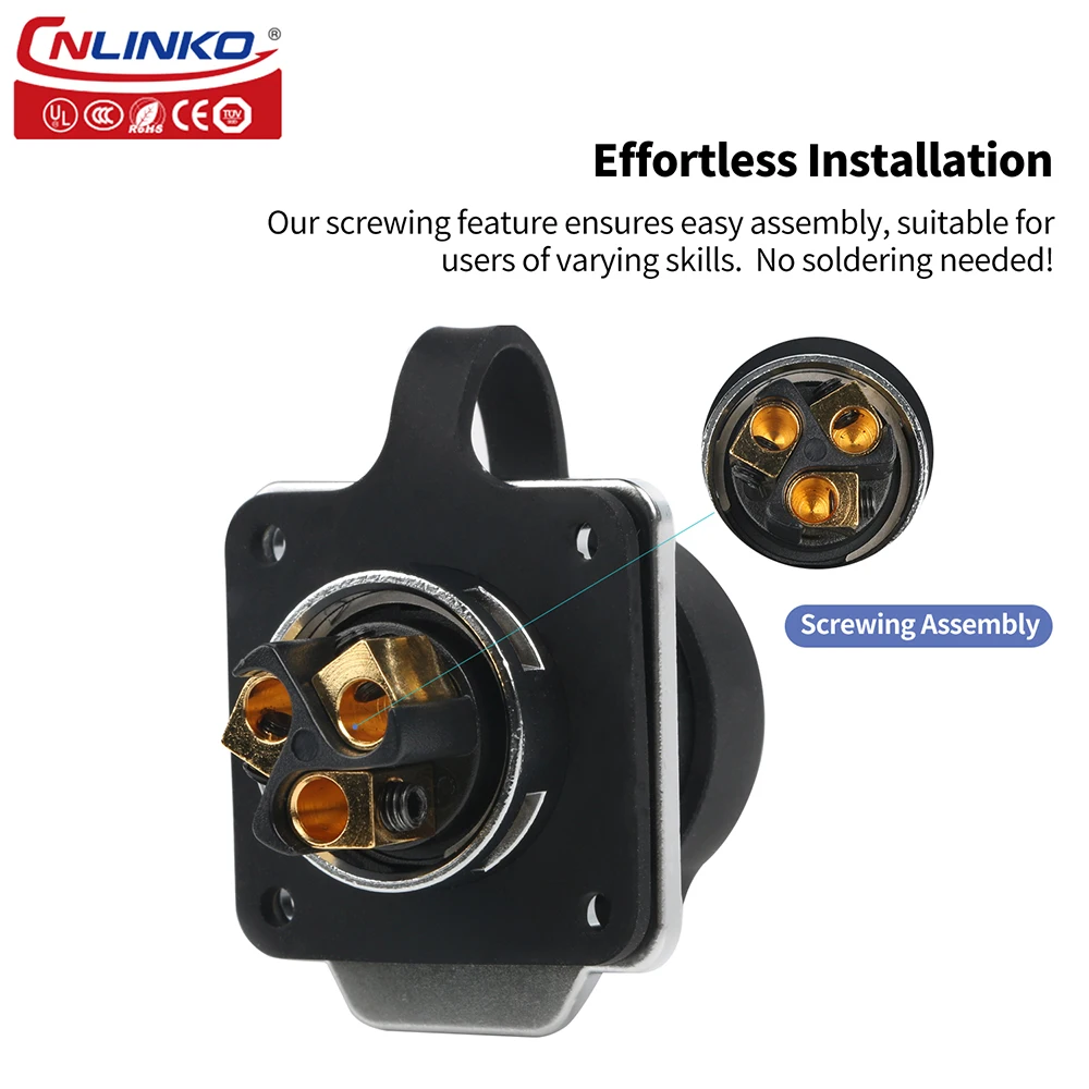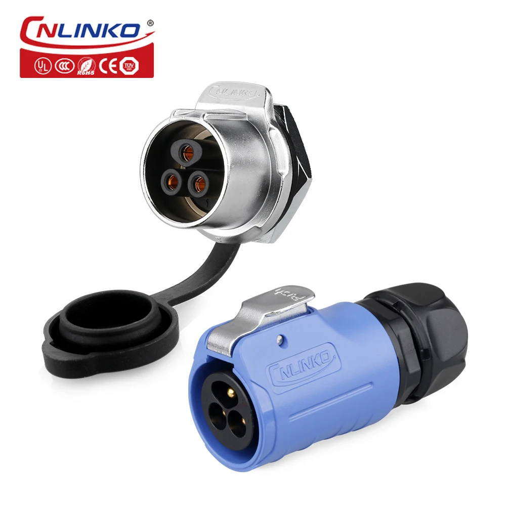 CNLINKO LP20 Connecteur d’alimentation ca/cc à verrouillage rapide à vis étanche à 3 broches Connecteur de montage sur panneau d’affichage à écran LED automobile
