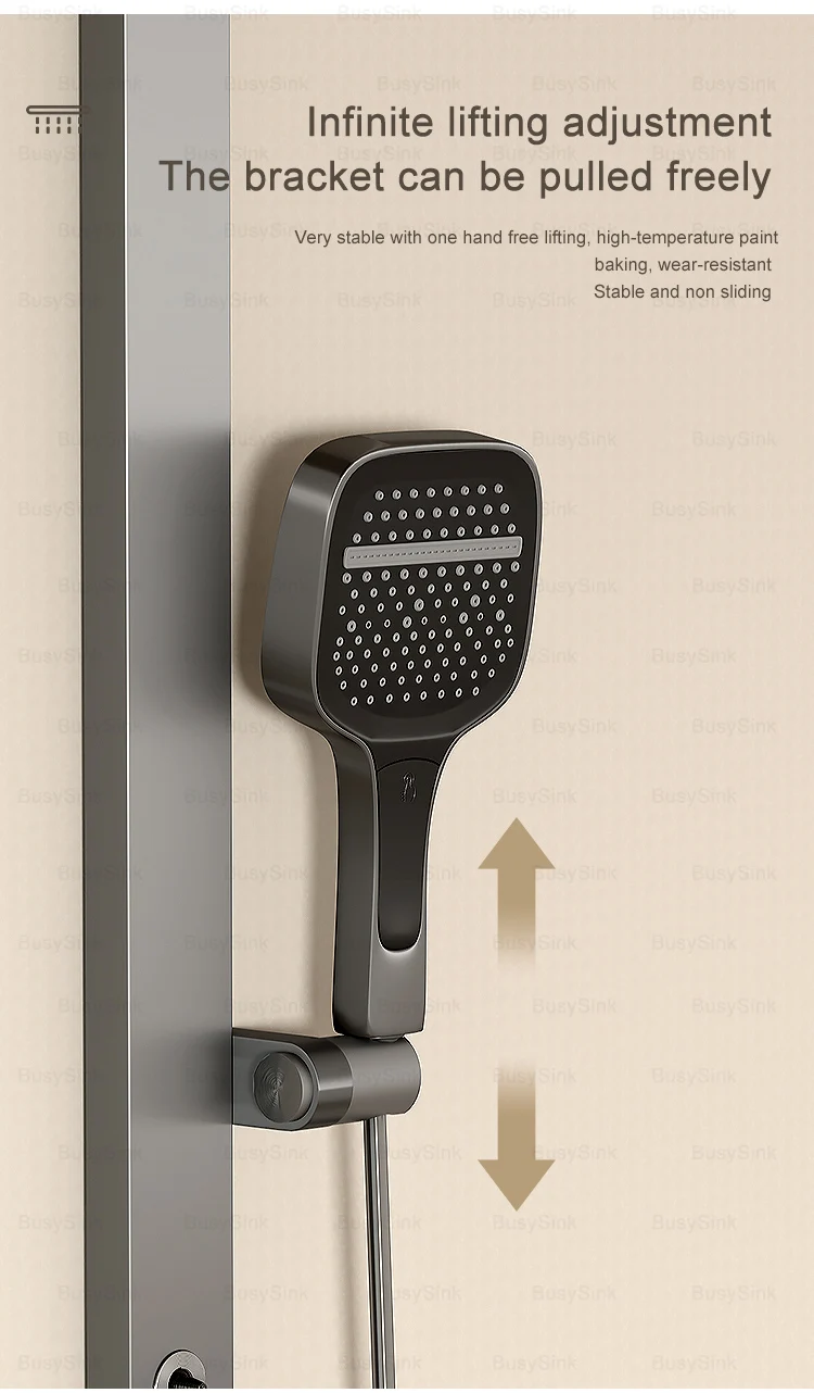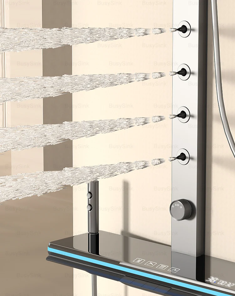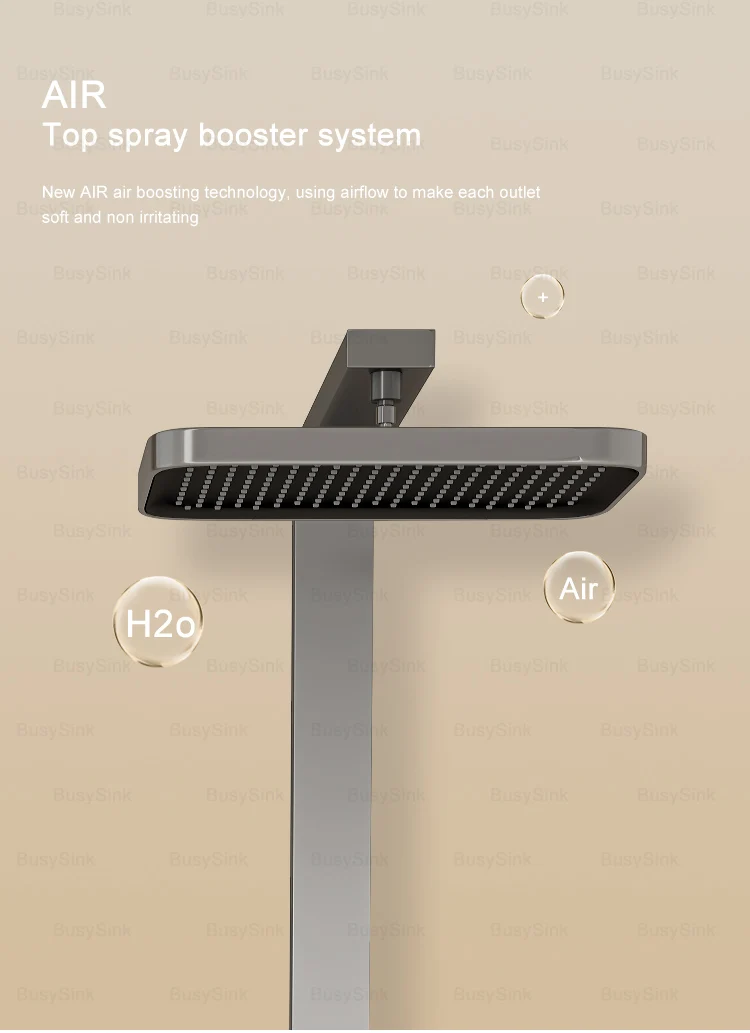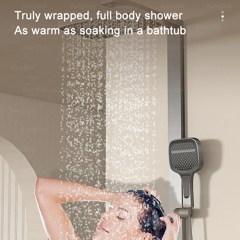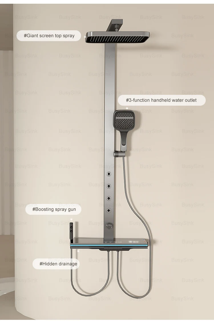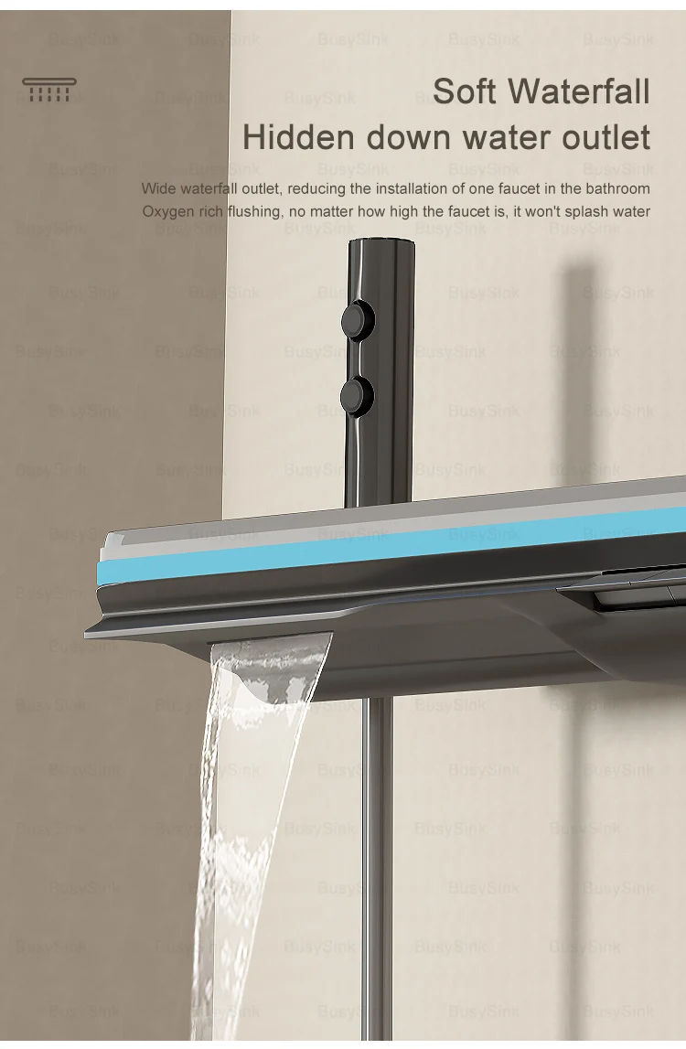 L’ensemble de douche à piano numérique LED, gris pour HOWhite, est un ensemble de douche innovant qui apporte une expérience unique à votre salle de bain. Grâce à son système de baignoire intelligente avec cascade et son système de douche pluie, vous pourrez profiter d’un moment de détente et de relaxation.
