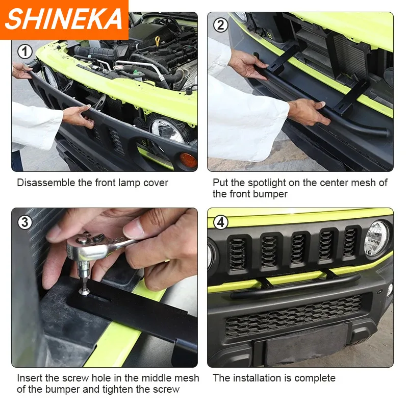 La grille de protection de pare-chocs avant SHINEKA est spécialement conçue pour les modèles Suzuki Jimny de 2019 à 2022. Fabriquée en alliage d’aluminium de haute qualité, elle offre une protection supplémentaire à votre pare-chocs. De plus, elle est équipée d’un spot LED intégré, offrant une meilleure visibilité et ajoutant une touche de style à votre véhicule. La barre d’invite de montage facilite l’installation de la grille, et elle est livrée avec tout le nécessaire pour une installation rapide et facile. Décorez votre voiture avec ce magnifique accessoire et assurez-vous de toujours briller sur la route !