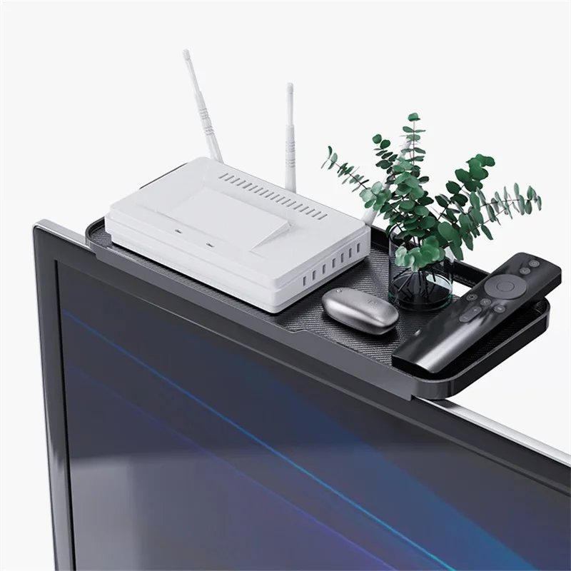 Ce support d’étagère de rangement supérieur pour écran TV T1 est un produit pratique et polyvalent pour organiser et ranger vos objets dans votre maison, bureau ou votre bureau d’ordinateur. Les caractéristiques principales du produit sont sa facilité d’utilisation sans avoir besoin de percer des trous, son économie d’espace sur le bureau, sa possibilité d’être utilisé comme support de téléphone portable et sa stabilité.