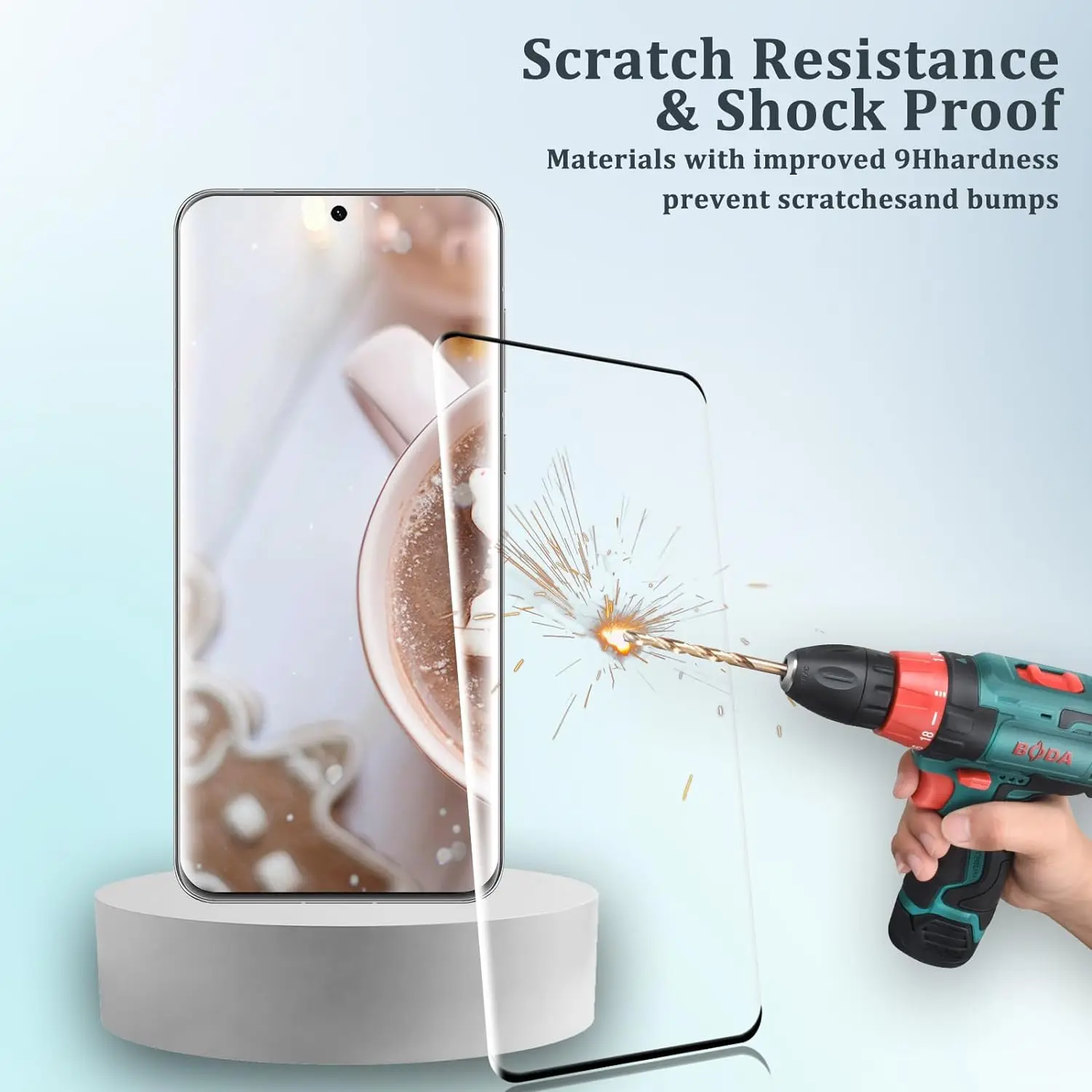 Ce protecteur d’écran 9H Dureté peut protéger efficacement votre téléphone contre les éraflures et les rayures indésirables par un couteau, des clés, et d’autres substances dures.