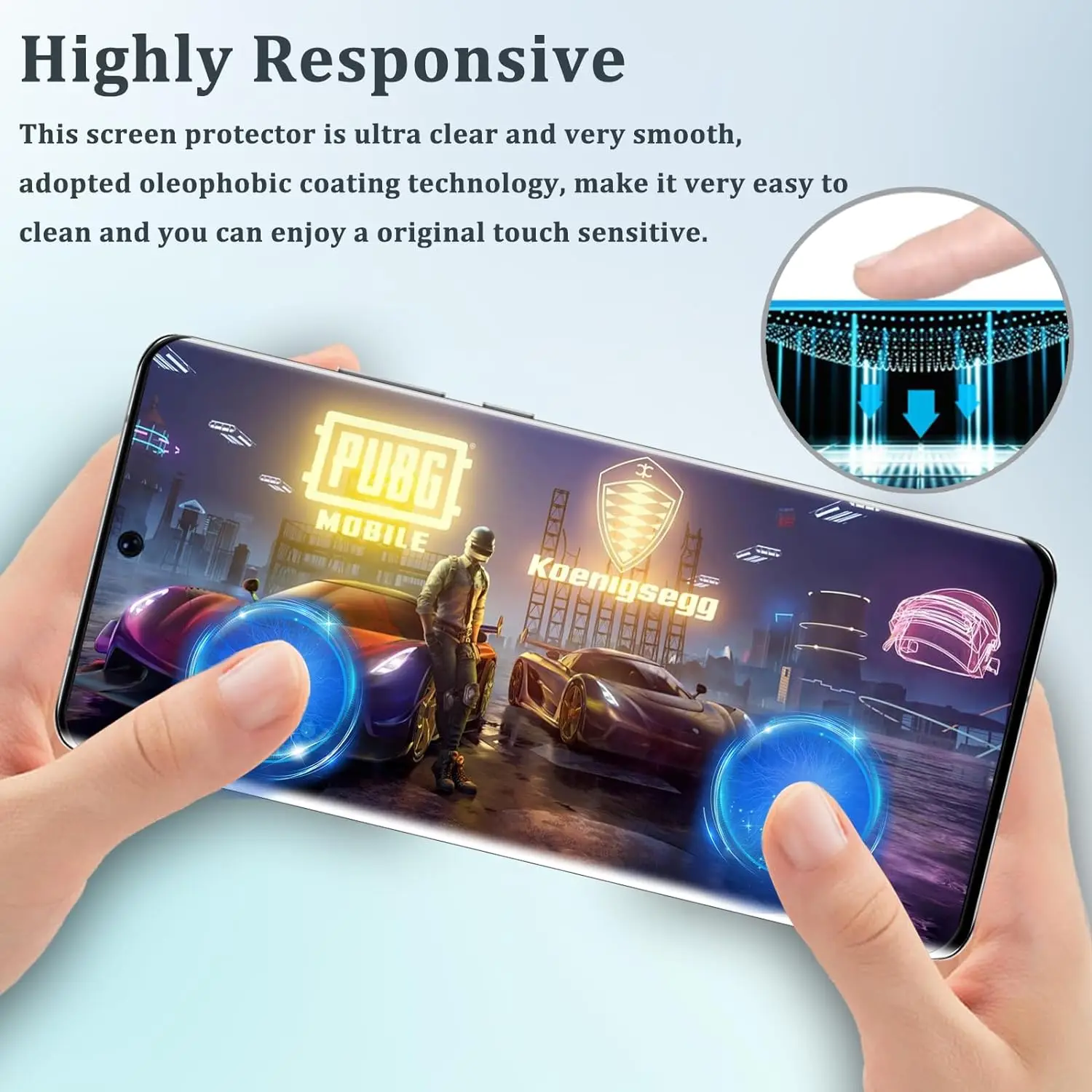 La haute transparence vous offre une vision claire haute définition. Le revêtement d’écran oléophobe hydrophobe protège contre la sueur et les résidus d’huile des empreintes digitales.