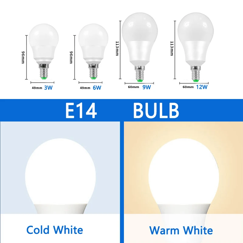 - Lot de 6 ampoules LED DC 12V avec différents niveaux de puissance : 3W, 5W, 7W, 9W, 12W, 15W