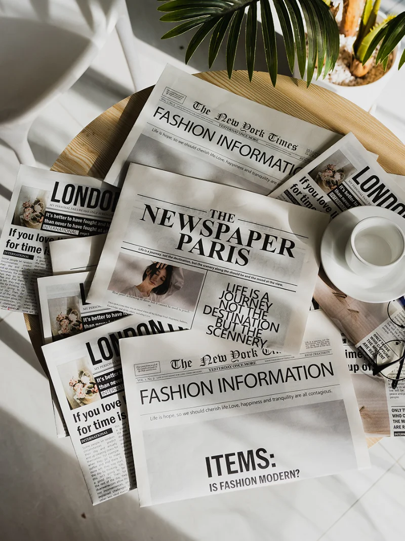 Les Accessoires de photographie de journaux anglais, ensemble de 2 pièces 58x42CM, sont des vêtements à la mode et une décoration de la maison parfaits pour créer un arrière-plan de photographie alimentaire.