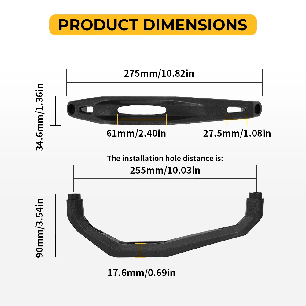 De plus, ces poignées servent de base de porte-bagages arrière modulaire, offrant une flexibilité d’utilisation selon les besoins. L’assemblage du rail de barre d’appui est facile et ne nécessite que le démontage des points d’arrimage d’origine, suivi du montage des poignées avec les vis fournies. En quelques étapes simples, le produit est prêt à être utilisé.