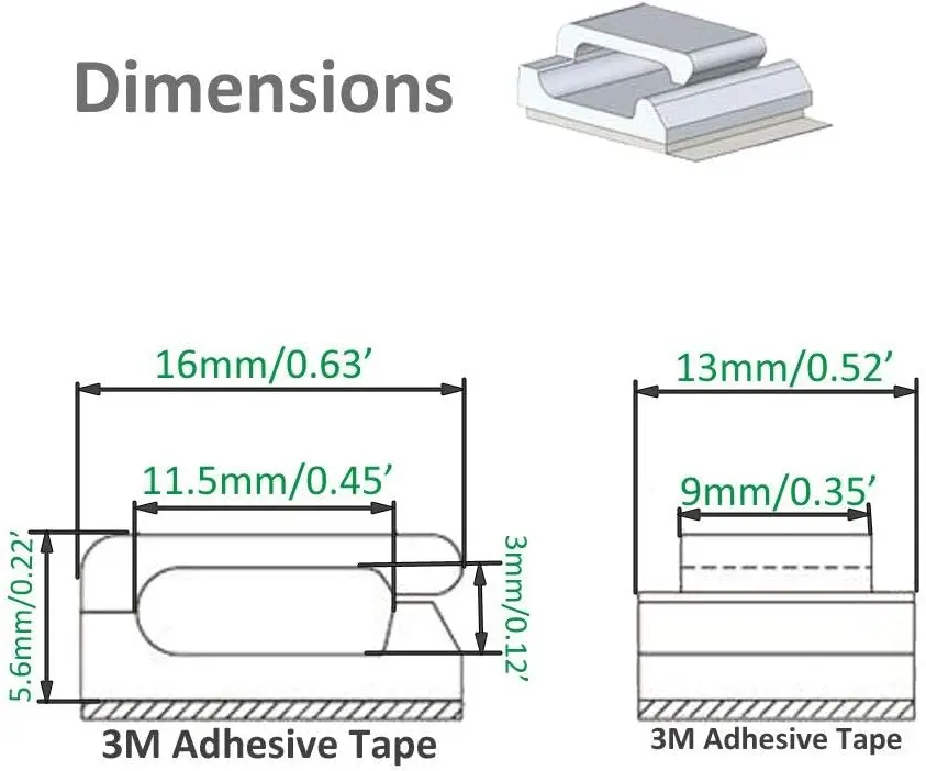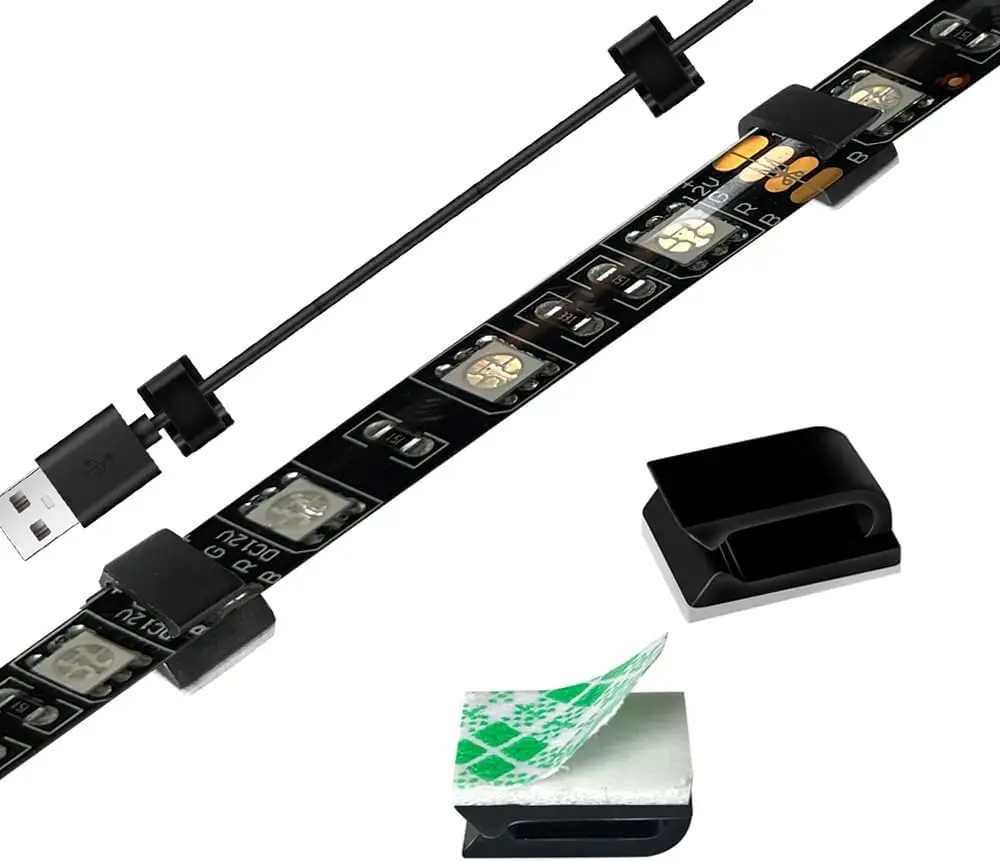 Les clips de montage de bande lumineuse LED sont fabriqués en matériau de protection PA 66 de qualité, recyclé et durable. Ils ne nuisent pas à la luminosité de la lumière. Dotés d’une forte colle de protection à l’arrière, ces clips offrent une fixation sécurisée pour la bande lumineuse. Ils sont faciles à installer sur des surfaces lisses en métal, plastique, bois ou céramique. Ces clips conviennent aux bandes lumineuses LED 3528 / 5050 / 2835 / 5630 d’une largeur inférieure à 10mm. Notez toutefois que ces clips ne conviennent qu’à la fixation de bandes lumineuses LED ou de fils fins d’un diamètre inférieur à 3mm. De plus, une fois fixés au mur, ils ne fixeront pas l’objet pendant les 48 premières heures.