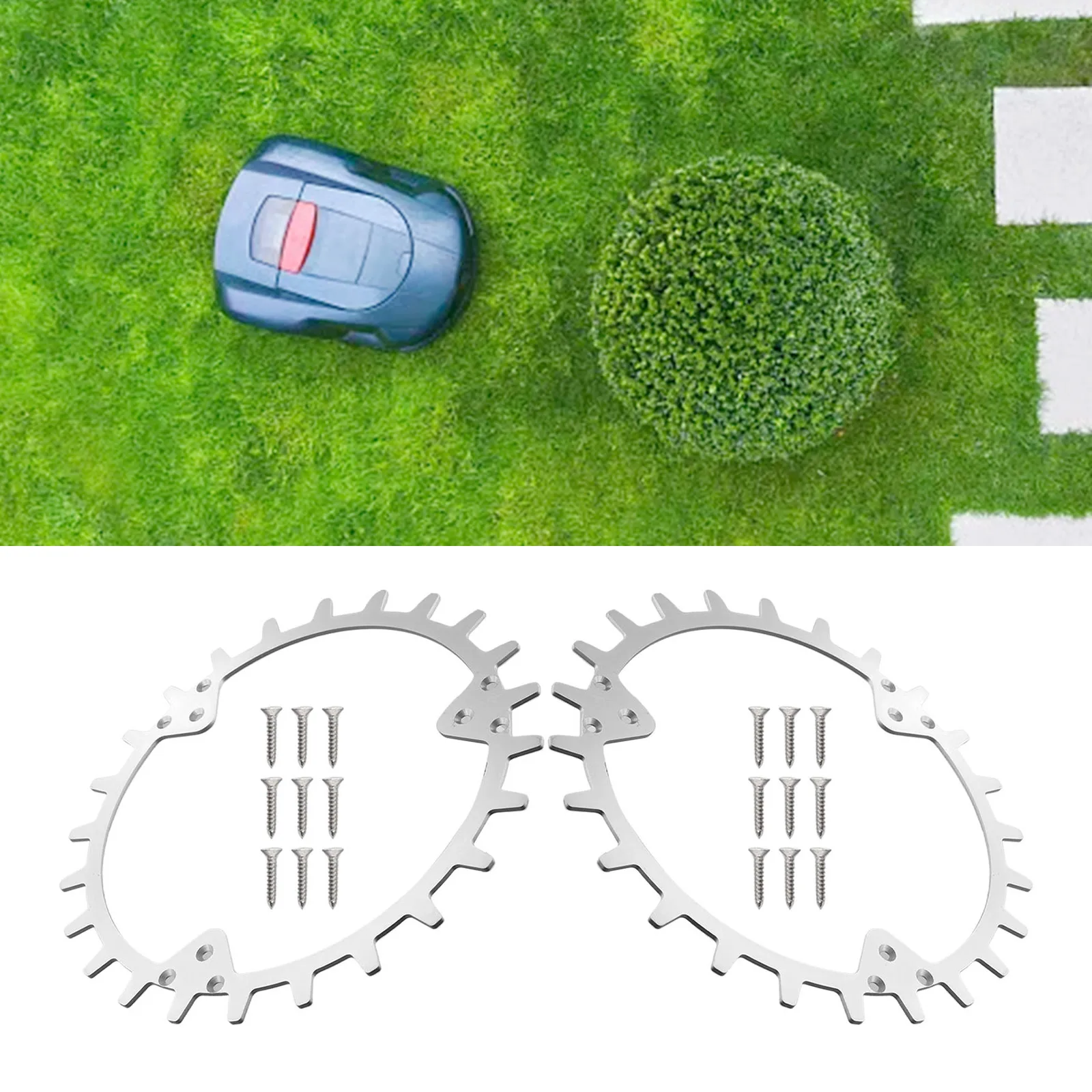 - Facile à installer et pelouse belle et saine: il suffit de centrer les pointes sur les roues et de les fixer avec les vis incluses. Les pointes de haute qualité assurent une belle pelouse. Fini les trous dans la pelouse en conduisant votre robot de tondeuse à gazon.