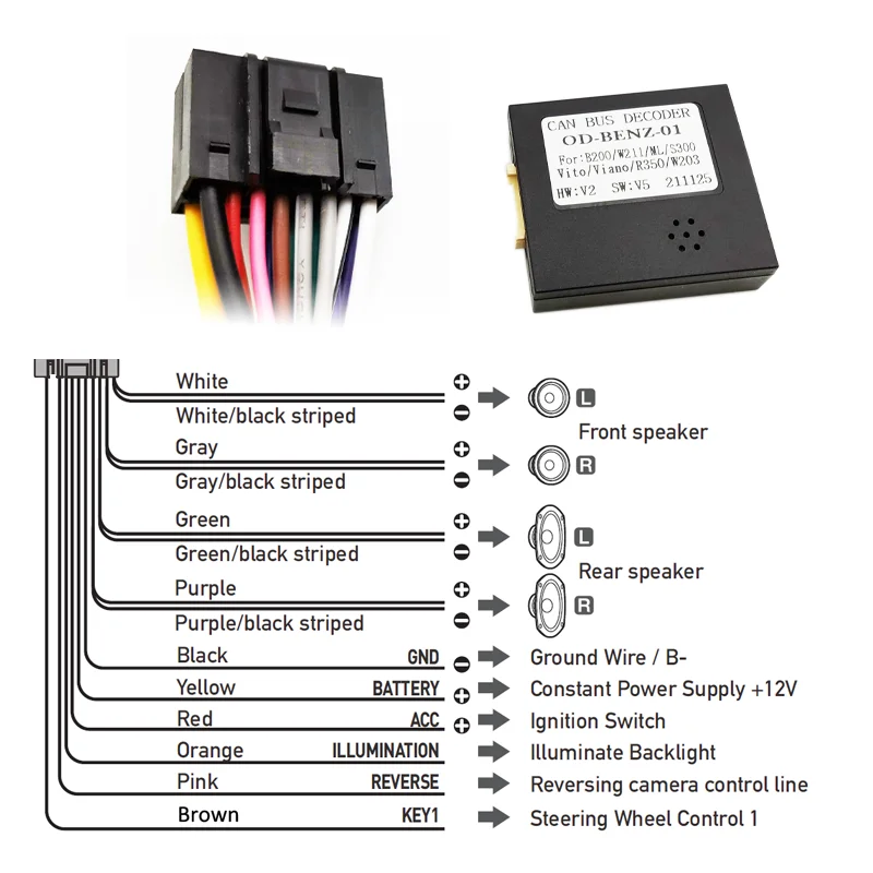 | Quadlock ISO faisceau de câblage CAN BUS décodeur 16 broches voiture Android câble adaptateur | Pour Mercedes A W169, B, ML, SUV, GL, R, Viano et Vito |
