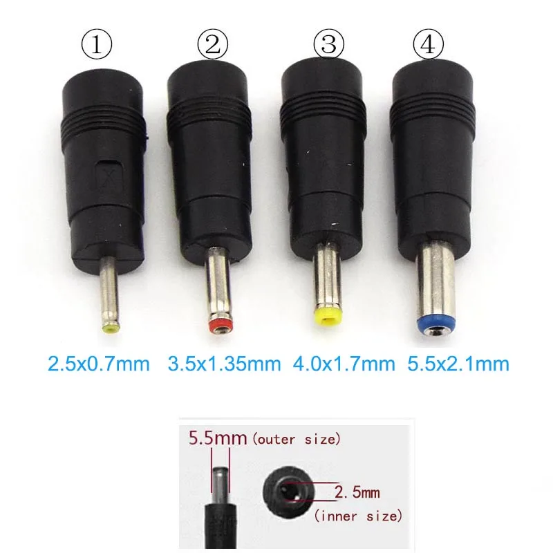- Connecteurs de différents types (3.5×1.35mm, 4.0×1.7mm, 5.5×2.1mm) pour une compatibilité étendue