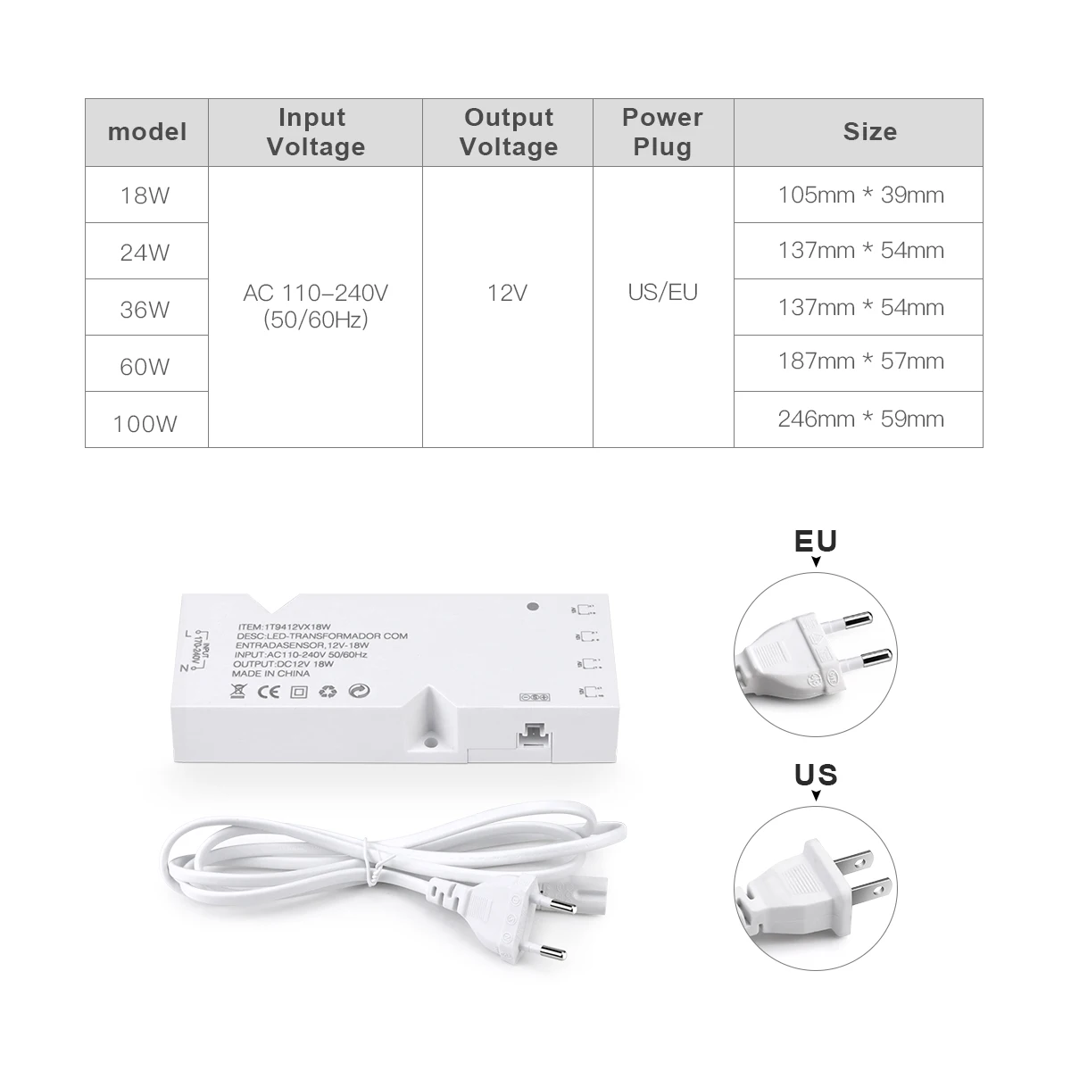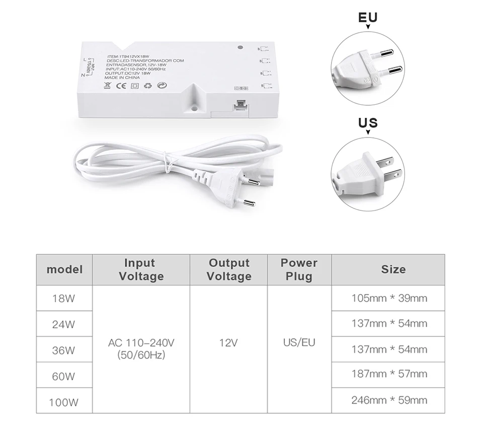 L’adaptateur d’alimentation pour éclairage LED est un élément essentiel pour toute installation d’éclairage à LED. Il est spécialement conçu pour fournir une alimentation stable et sécurisée aux bandes LED, aux pilotes de bande et à d’autres appareils d’éclairage. Avec sa tension de sortie de 12V et ses courants de 3A, 5A et 8A, cet adaptateur convient à une variété d’applications, telles que l’éclairage domestique, l’éclairage d’armoires et l’éclairage d’étagères.