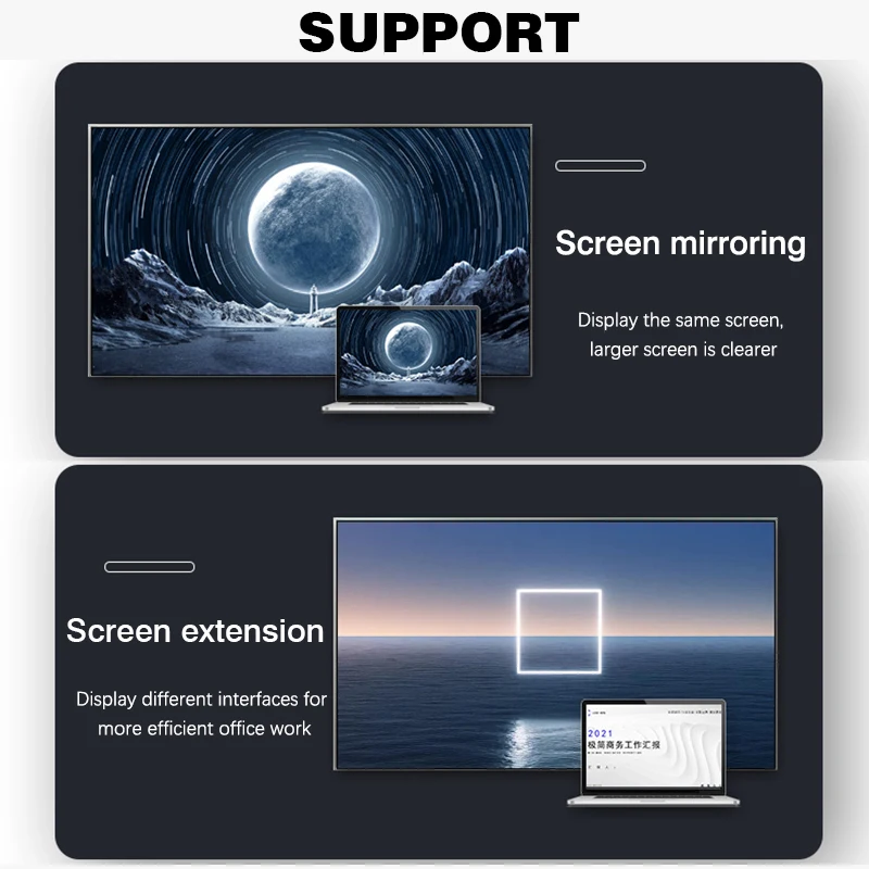 L’Adaptateur de câble HDMI 2.1 propose également deux modes d’utilisation : l’extension d’écran et la mise en miroir, ce qui le rend polyvalent dans différentes situations. De plus, son installation est simple et rapide, il suffit de le brancher et il est prêt à l’emploi.