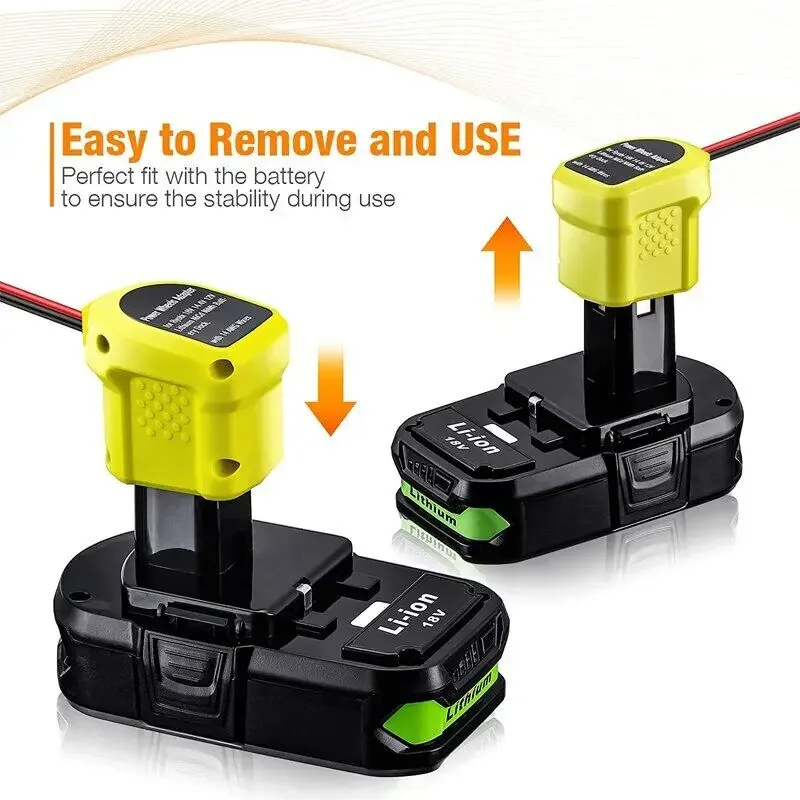 | Principe de fonctionnement | Connectez cet adaptateur à une batterie Ryobi 7.2-18V Ni-Cd/Li-ion et utilisez deux fils pour extraire l’alimentation de la batterie pour d’autres appareils ayant la même tension. Convient aux joueurs de bricolage pour les petits ventilateurs DC, les vêtements chauffants, la modification des jouets électriques, etc. |