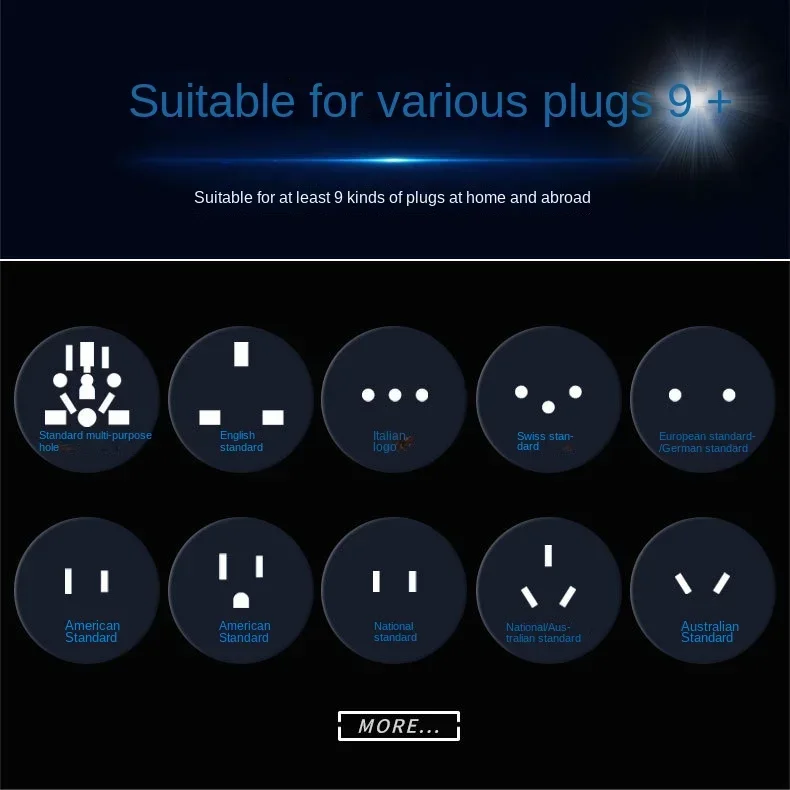 - Ne couvre pas la grande prise sud-africaine (type M), la grande prise chinoise à 3 broches de 8.1mm, la prise