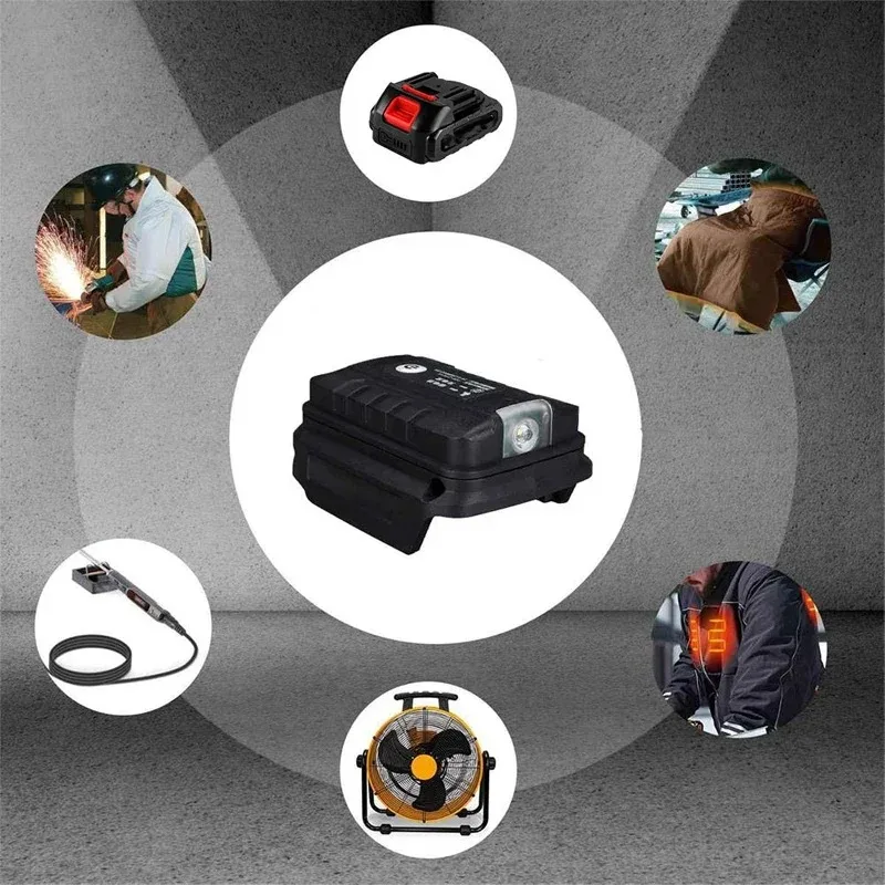 L’adaptateur de batterie USB Eddie Ion est un accessoire pratique pour les amateurs de camping. Il vous permet de charger votre téléphone portable ou d’autres appareils électroniques grâce à la batterie Makita 18V. De plus, il est équipé d’une lumière LED portable, ce qui en fait un outil polyvalent pour vos activités en plein air.