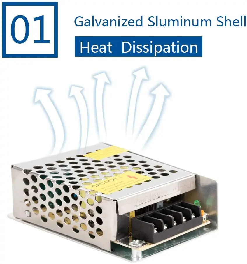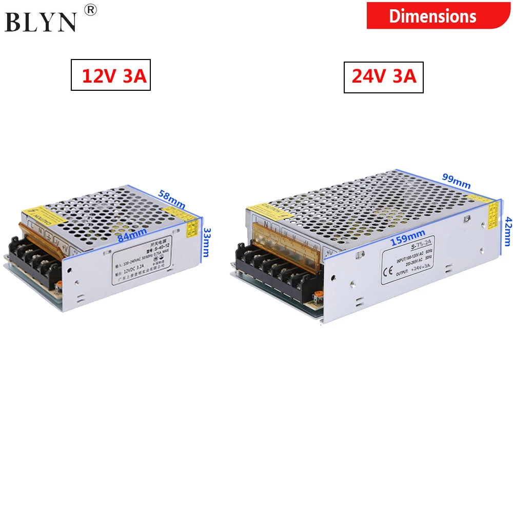 L’alimentation électrique 12V 24V 3A DC est un boîtier compact en métal. Il trouvera facilement sa place dans de nombreuses applications, telles que l’automatisation industrielle, l’impression 3D, les projets de bricolage, l’affichage à LED, la bande lumineuse LED, etc.
