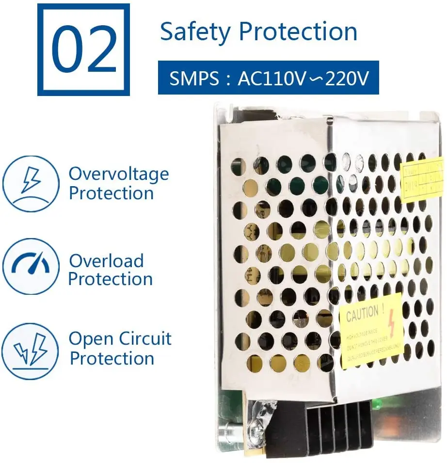 Cette alimentation à découpage fonctionne avec une tension AC110V ~ 220V et fournit une sortie réglée en tension. Elle dispose d’une fonction de protection contre les court-circuits, les surcharges et les surtensions, pour garantir la sécurité de vos appareils.