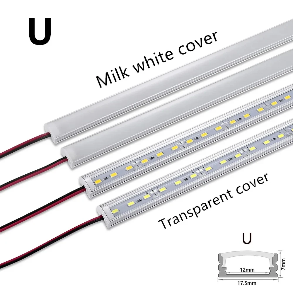 Barre lumineuse rigide en aluminium LED DC12V 50CM 20 pouces U/V-shape 5730 36LED LED canal en aluminium Éclairage de décoration intérieure
