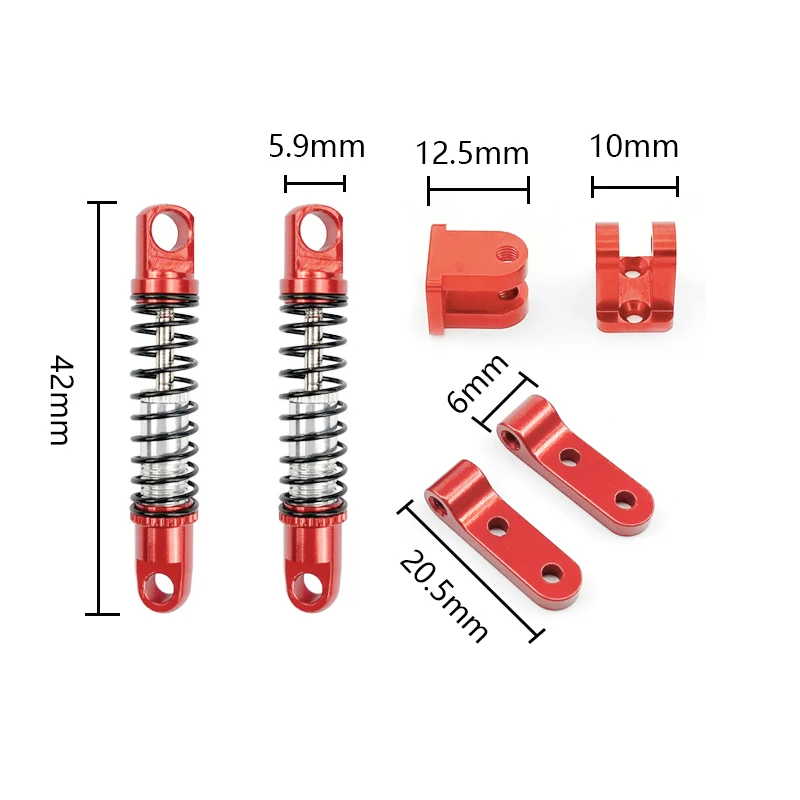 Ces amortisseurs avant et arrière en métal avec support sont spécialement conçus pour être utilisés avec la voiture RC WPL D12. Ils s’adaptent parfaitement à ce modèle et améliorent sa performance globale.