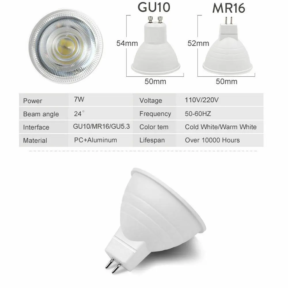 - Type: GU10/GU5.3/MR16