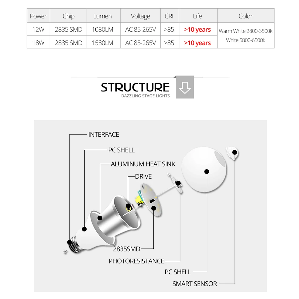 - Puissance: 12W/18W