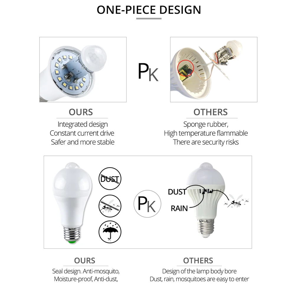 - Ampoule LED avec capteur de mouvement PIR