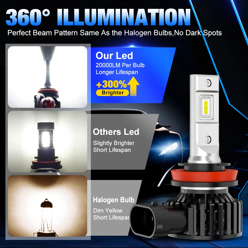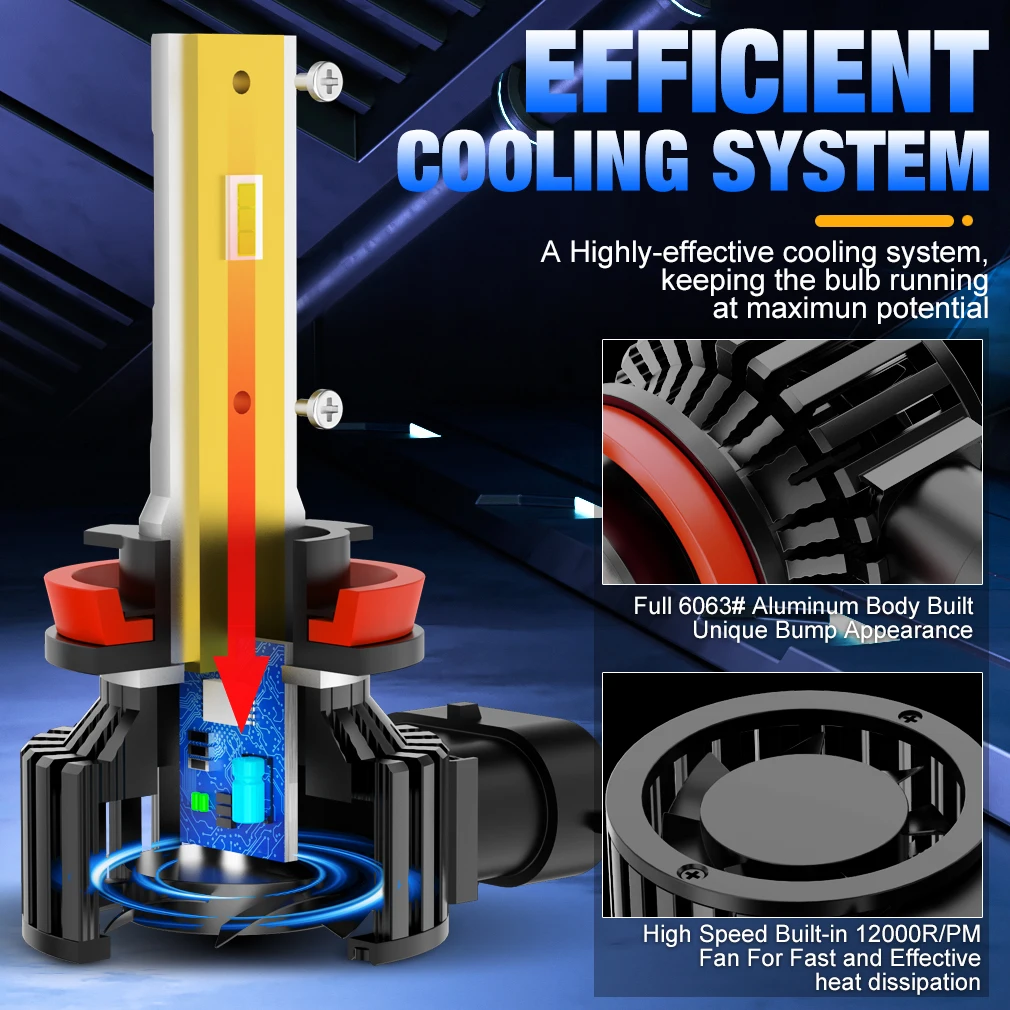 Les ampoules de phare de voiture Turbo sont équipées de puces LED 3570 CSP super lumineuses. Avec une puissance de 100W, elles offrent un éclairage extrêmement lumineux de 35 000LM. La tension de fonctionnement est de 12V.