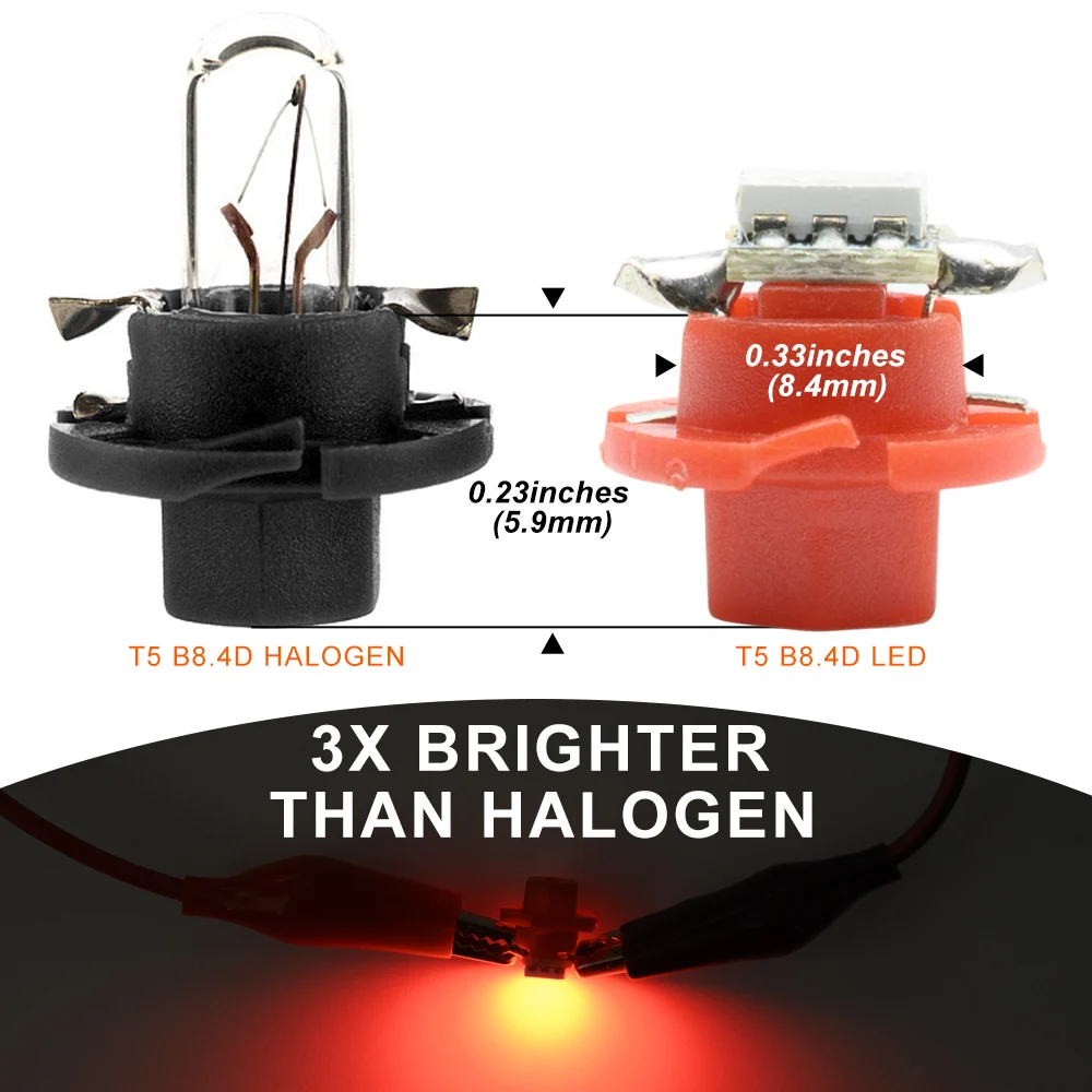 Ces ampoules sont de type T5 B8.4D avec 5050 smd LED. Elles sont disponibles en différentes couleurs : blanc, bleu, rouge, jaune et vert.
