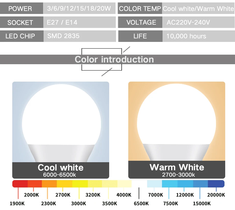 3W 6W 9W 12W 15W 18W 20W Luminosité: 100LM/W