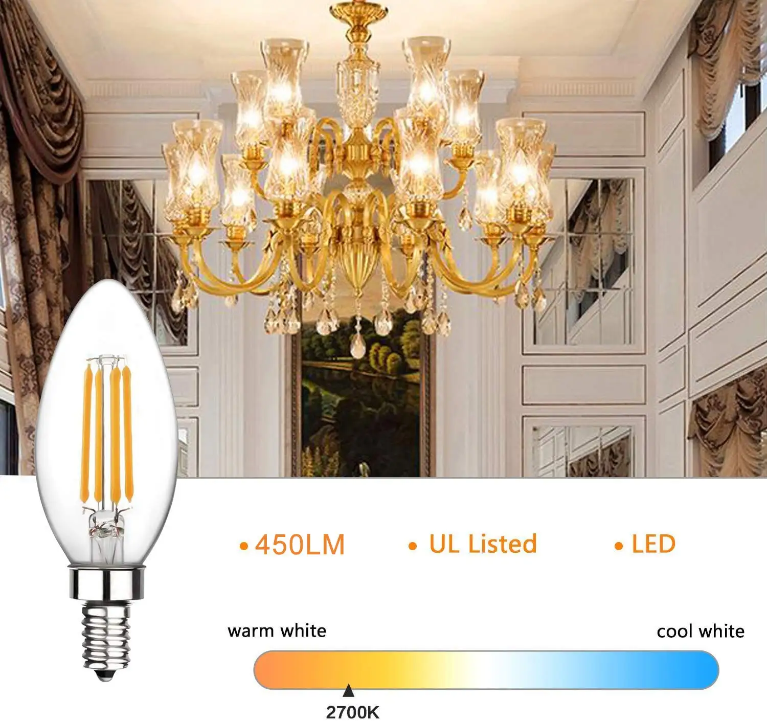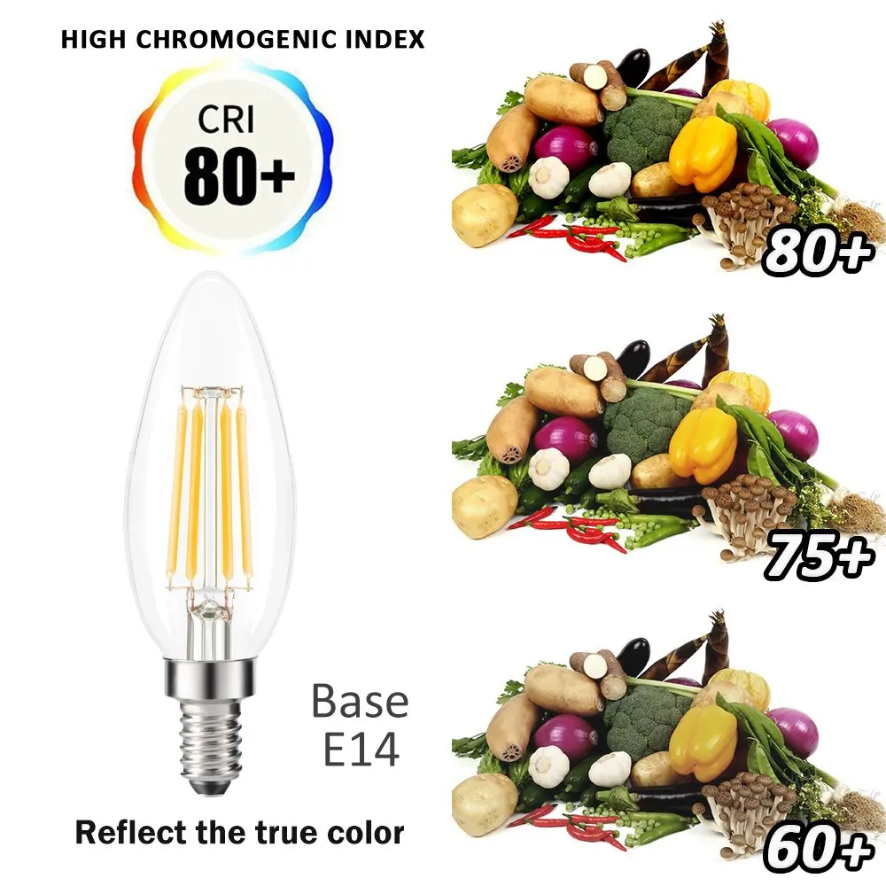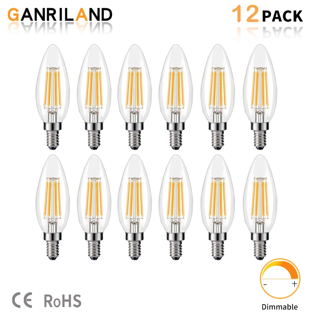 Ampoule Led C35 E14 à intensité variable 4W, lampe à Filament, lampe à bougie Vintage blanc chaud 2700K pour lustre, ampoules de nuit, 12 pièces