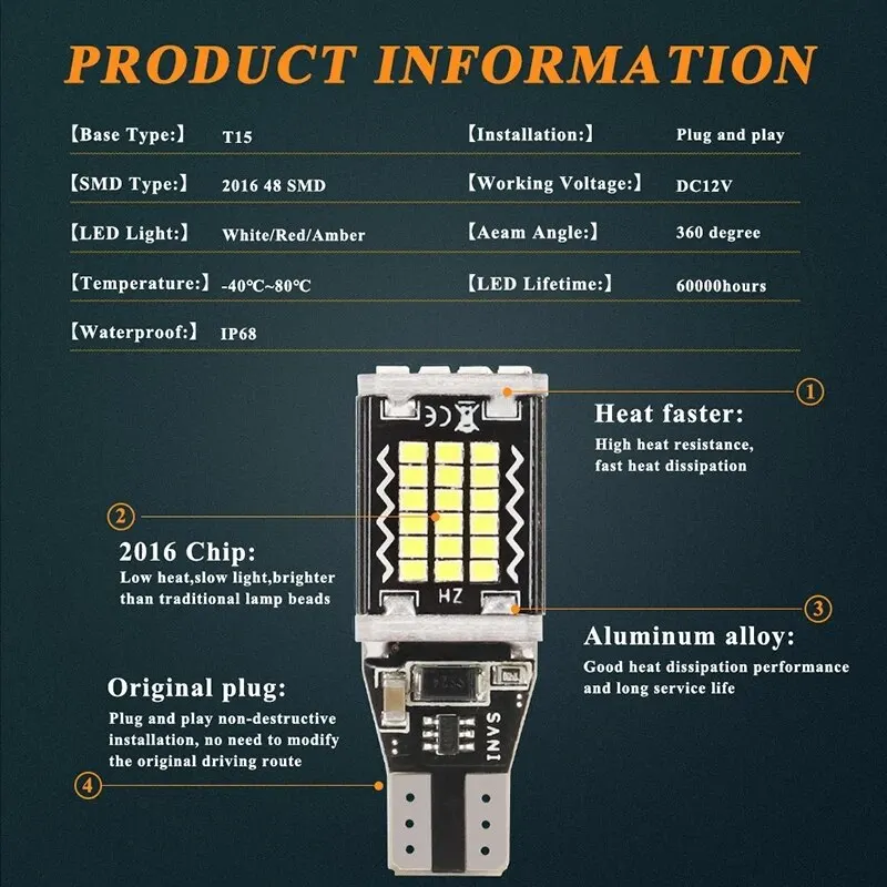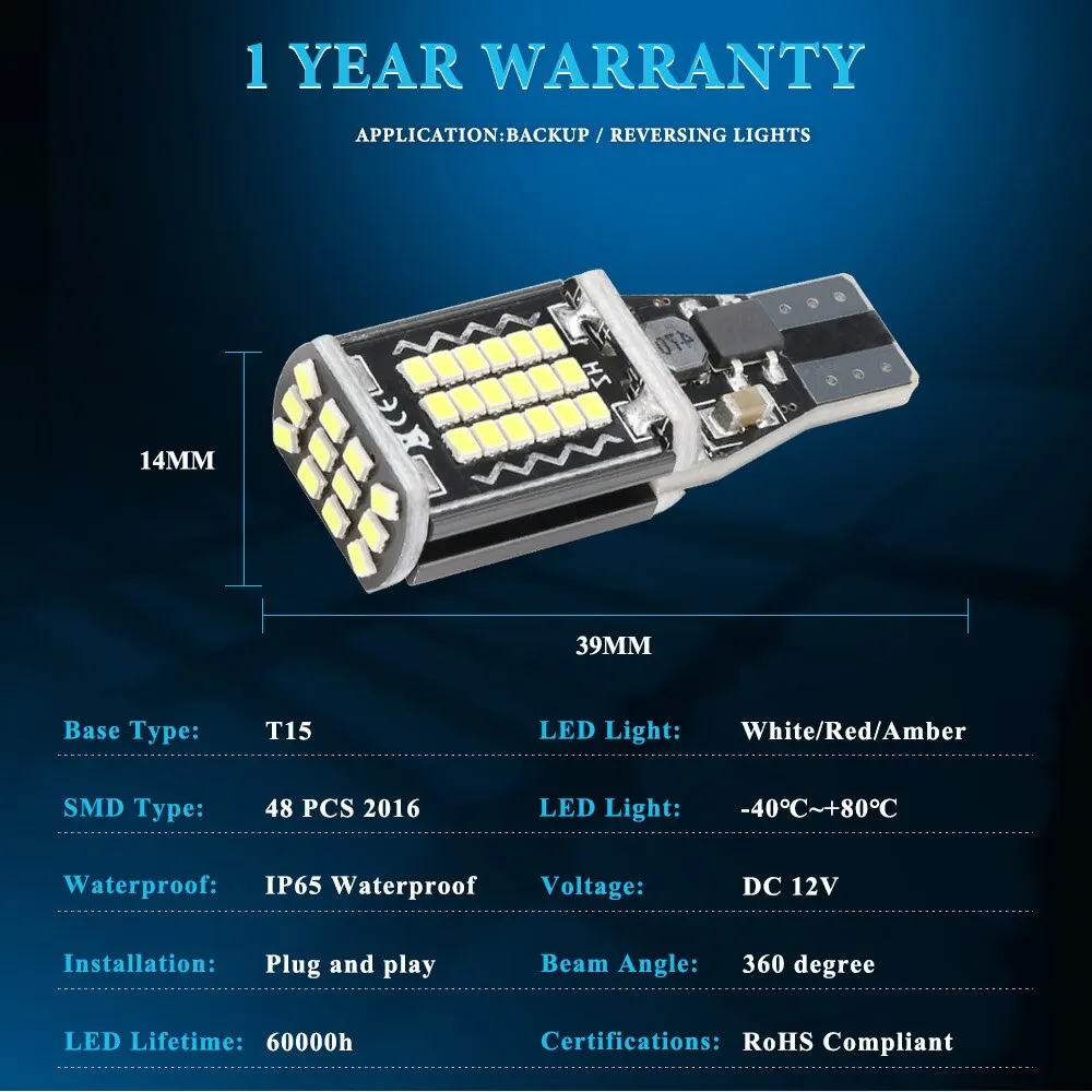 2PCS T15 W16W 921 912 T16 902 LED Bulbs High Power Super Bright Replace For Car Reversing Light White Canbus