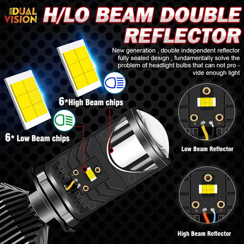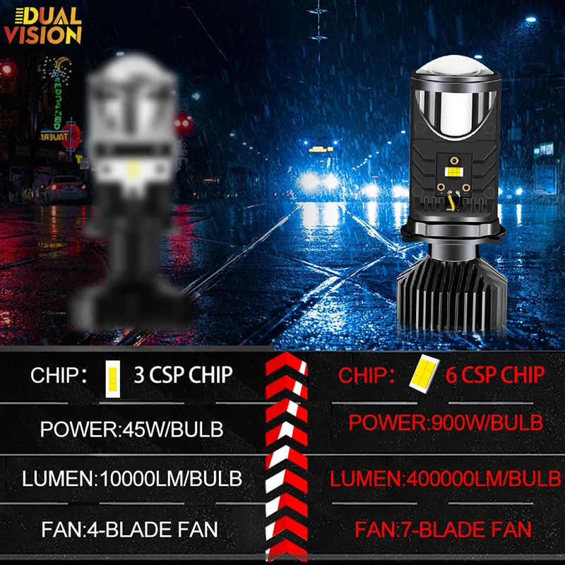 - Mini projecteur LED H4 avec ampoules de phares de voiture