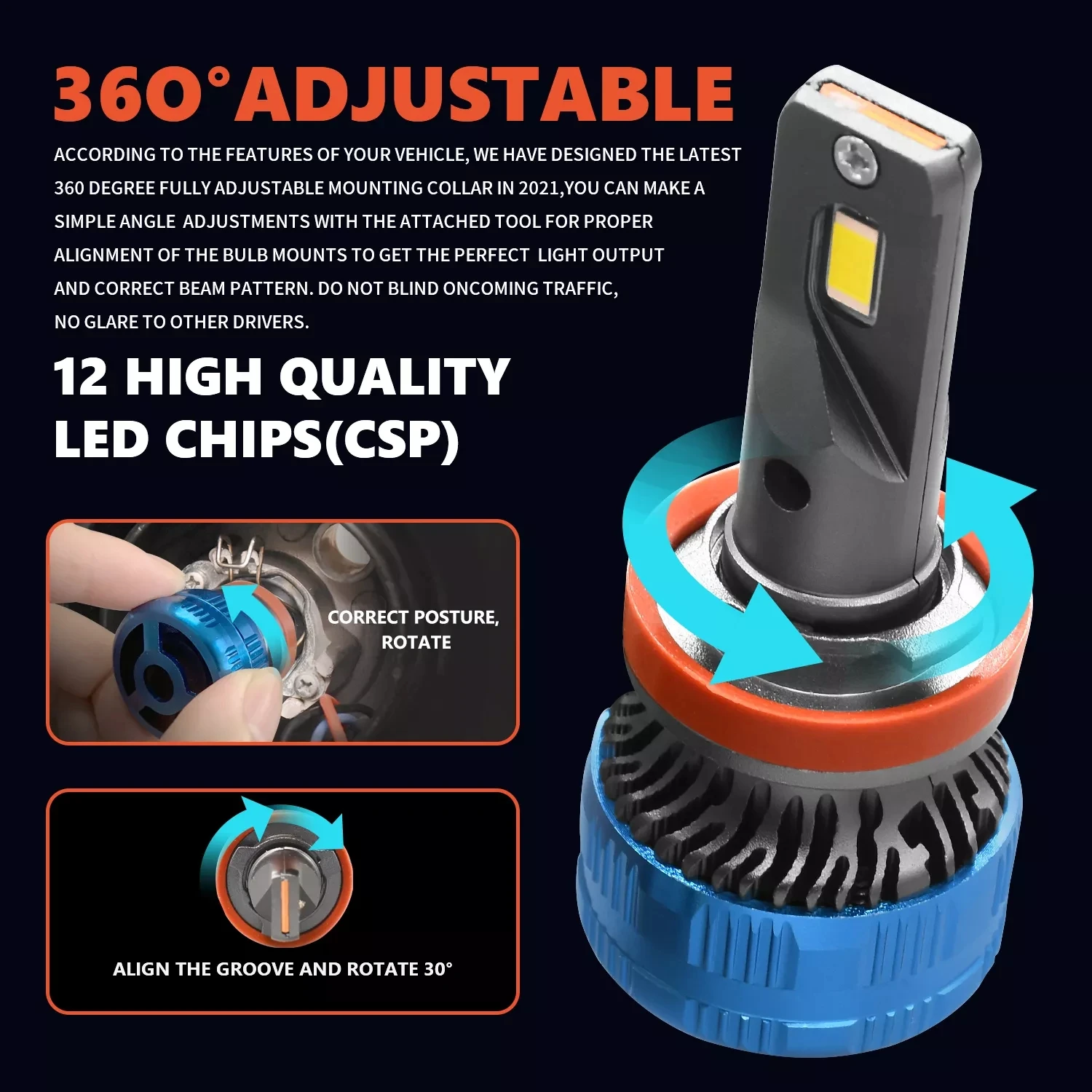 2. Il convient à la plupart des voitures, pas sans erreur à 100%. Si cela ne fonctionne pas après l’installation, essayez d’inverser la prise à 180 ° et reconnectez. S’il clignote ou s’il y a une erreur. Il peut être causé par le courant différent. Parce que nos phares à LED économes en énergie nécessitent moins de courant que les phares halogènes ou au xénon, vous devez installer une paire de décodeurs pour résoudre le problème.