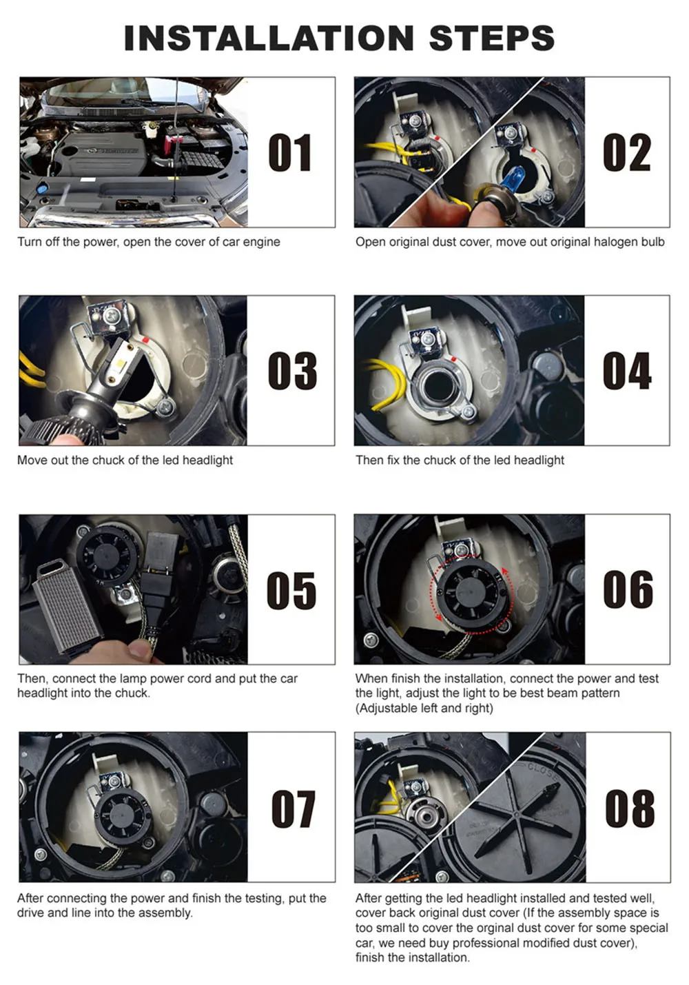 7. Il est préférable d’installer un cache-poussière pour empêcher la poussière d’affecter la durée de vie des phares.