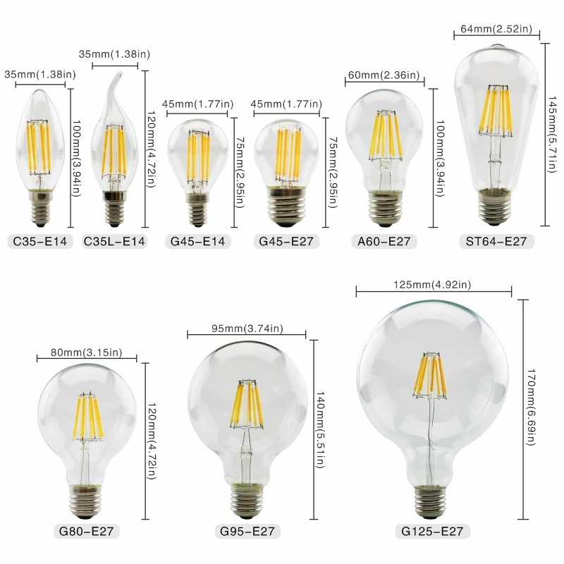 - Modèle: C35 / C35L / G45 / A60 / ST64 / G80 / G95 / G125
