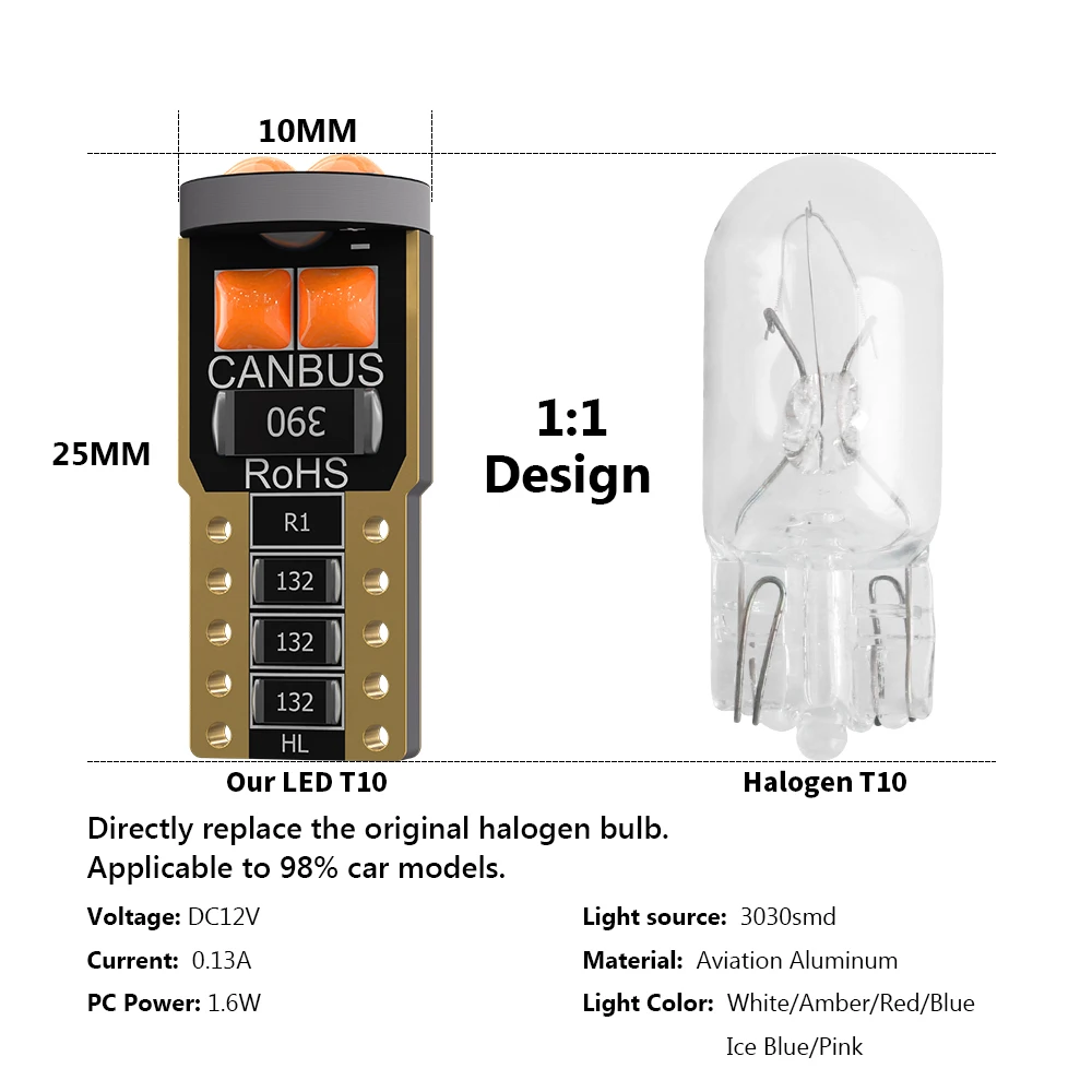 2PCS T10 LED ampoule