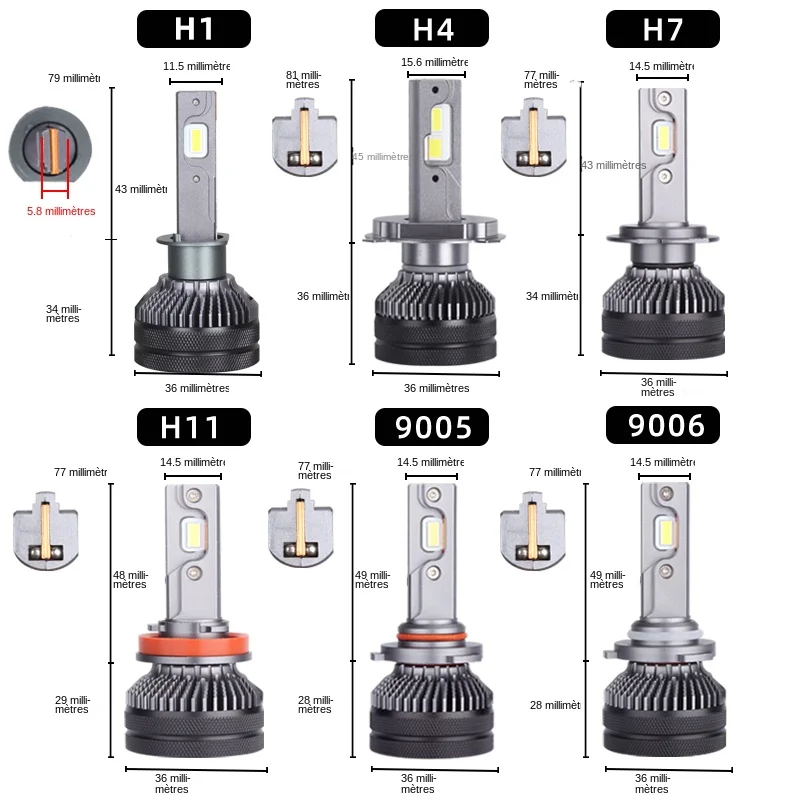 - Compatibilité avec les modèles H7, H4, H1, H11, HB3, 9005, HB4, 9006