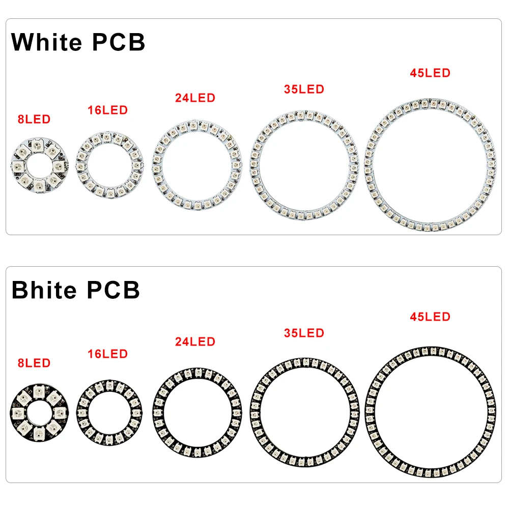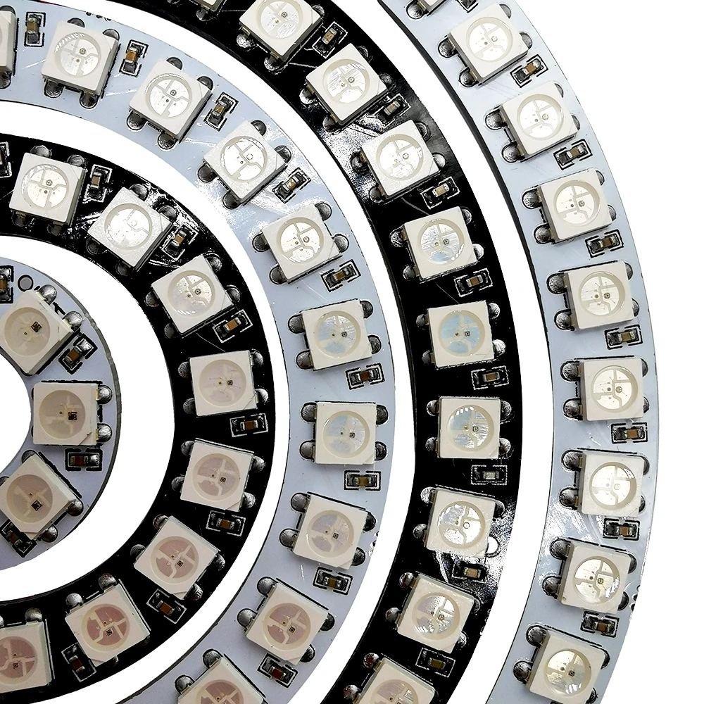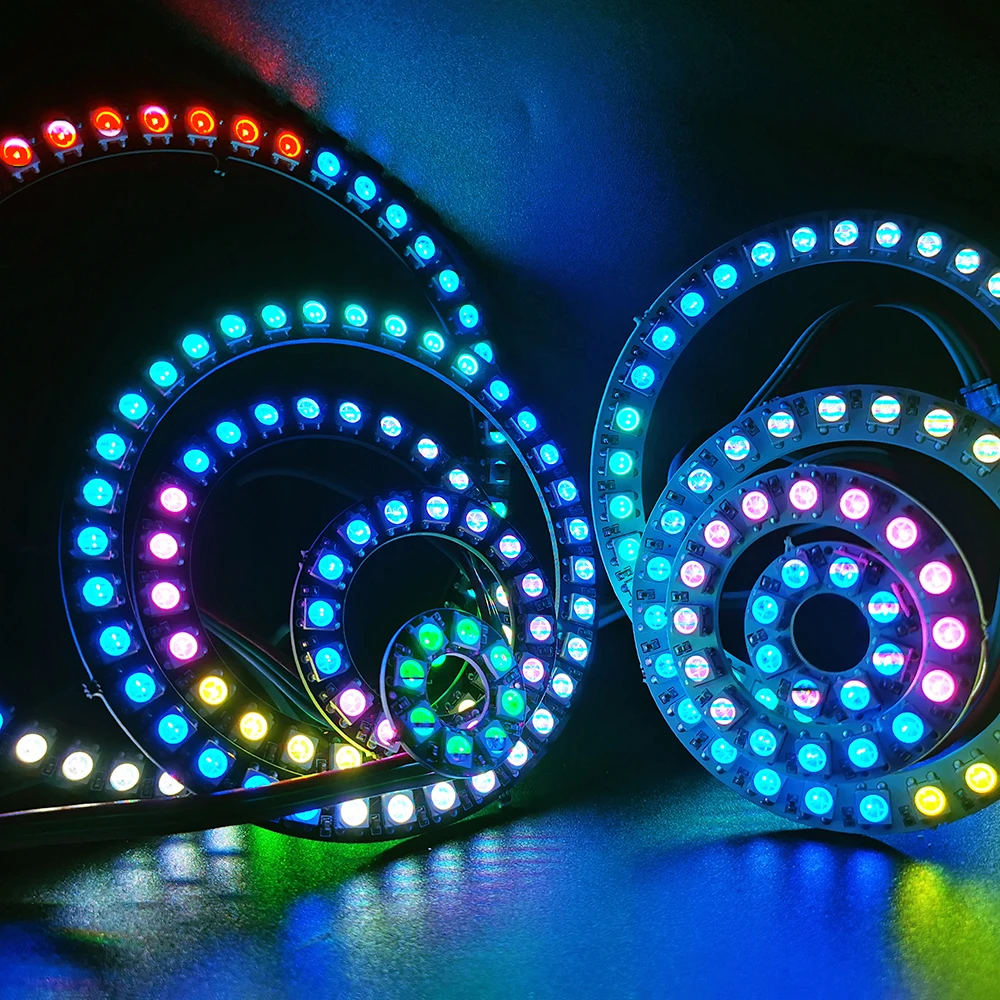 L’anneau Led intelligent DC5V WS2812B est un module de cercle polychrome adressable individuellement, avec un PCB noir ou blanc. Il dispose de 5050 pixels RGB et de 3 broches. Ce module peut être utilisé pour décorer des vêtements ou des décorations de vacances grâce à ses couleurs magnifiques.
