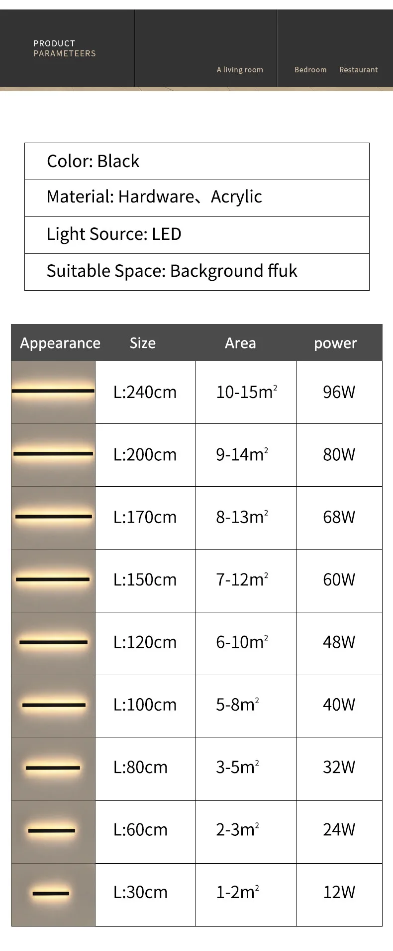 - Température de couleur: lumière chaude (2700K-3500K), lumière neutre (4000K-4500K), lumière froide (6000K-6500K), intensité réglable avec télécommande