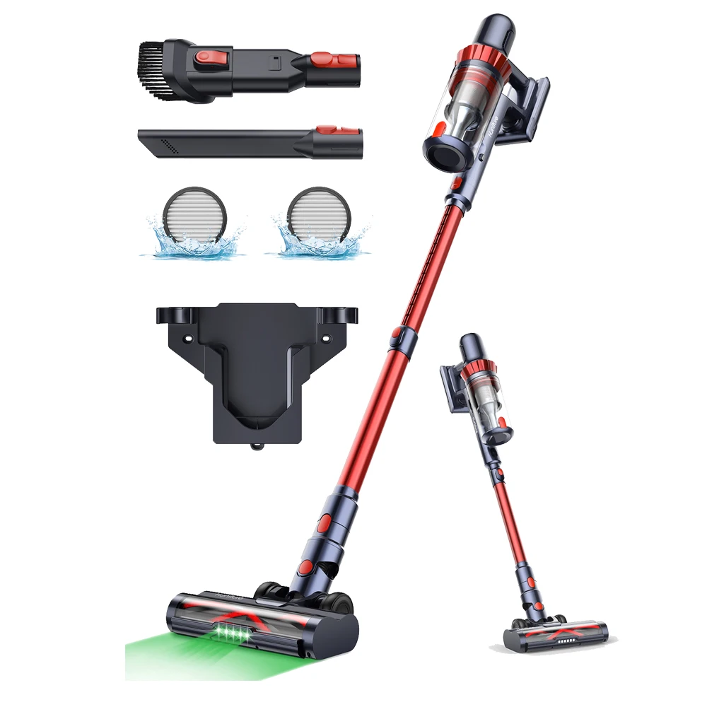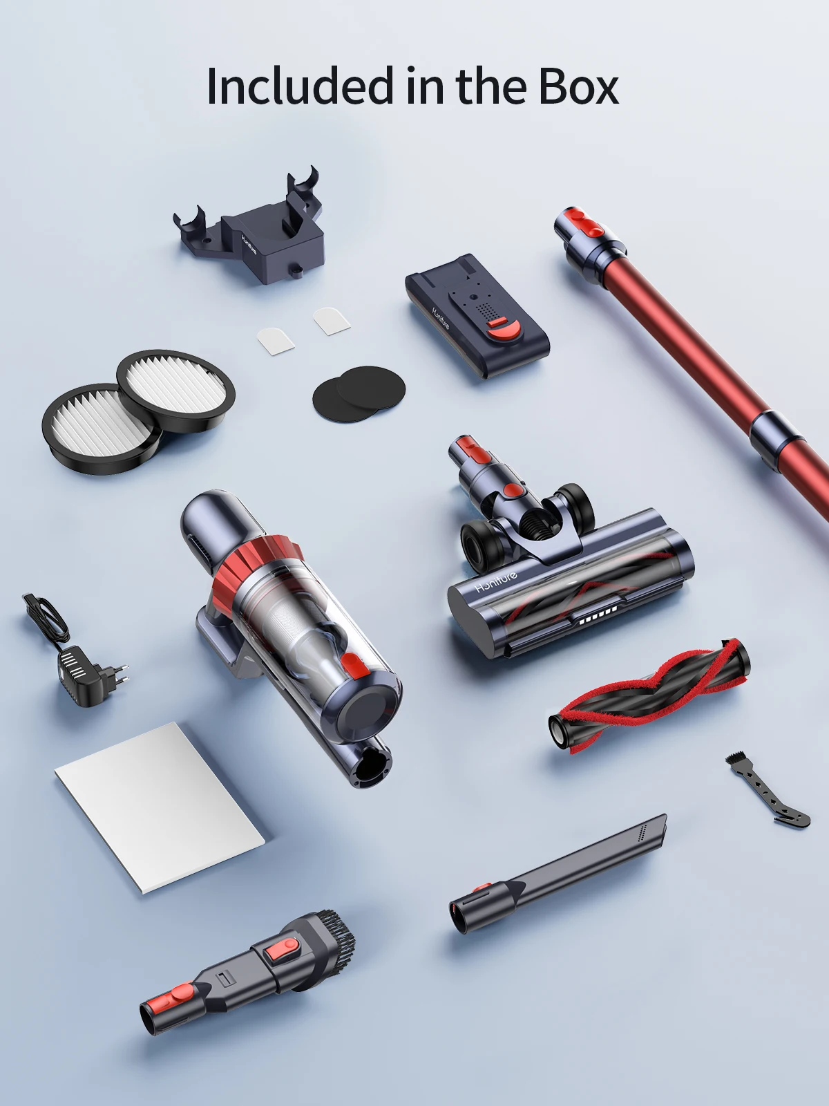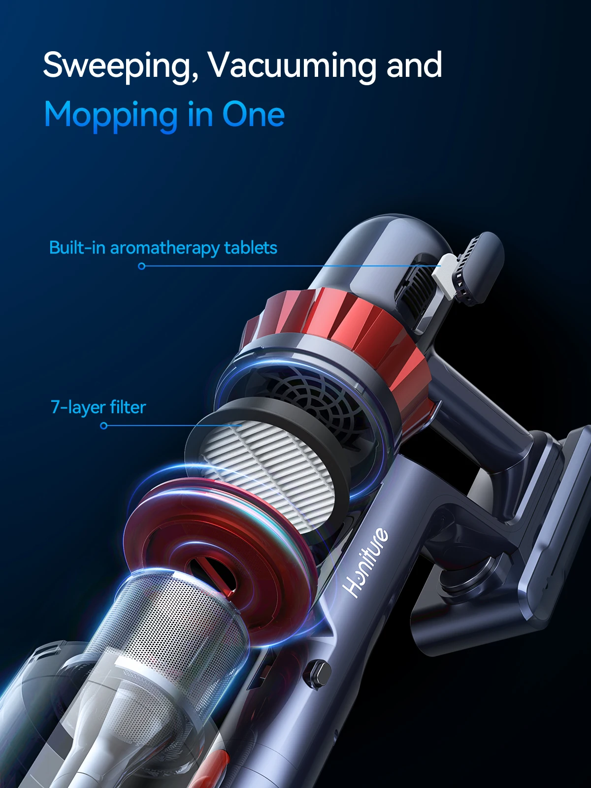 L’aspirateur sans fil avec fonction d’aromathérapie intégrée dispose d’un moteur numérique de 450W qui offre une aspiration plus forte et plus efficace. Avec un réglage d’aspiration à 3 vitesses, il peut atteindre une puissance d’aspiration maximale de 38kpa, ce qui permet d’éliminer facilement la poussière et la saleté en une seule fois.
