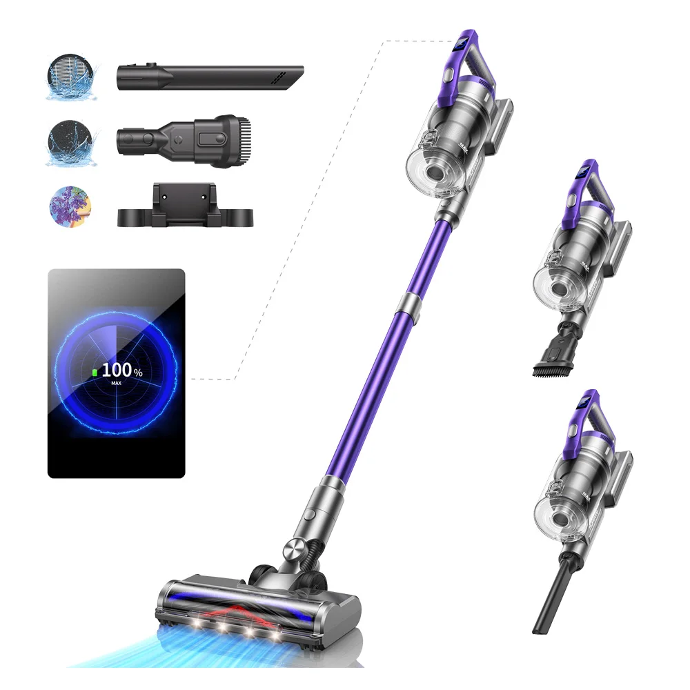 L’aspirateur sans fil pour tapis et poils d’animaux est un appareil ménager intelligent de haute performance. Avec une puissance d’aspiration de 38 000 pa, il offre une grande puissance de succion pour éliminer efficacement la poussière, les poils d’animaux, le sable pour chats et autres saletés sur les sols durs et les tapis.