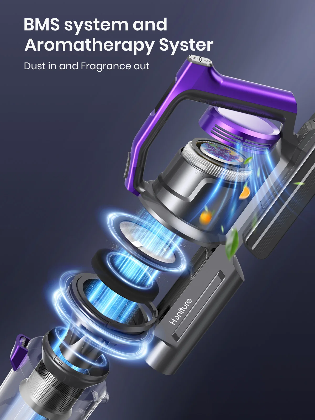 La filtration de niveau 7 de cet aspirateur permet d’éliminer 99,99% de la poussière et de filtrer les particules aussi petites que 0,3 μm. De plus, la sortie d’air est équipée d’un dispositif de tablette d’encens qui diffuse une agréable fragrance.