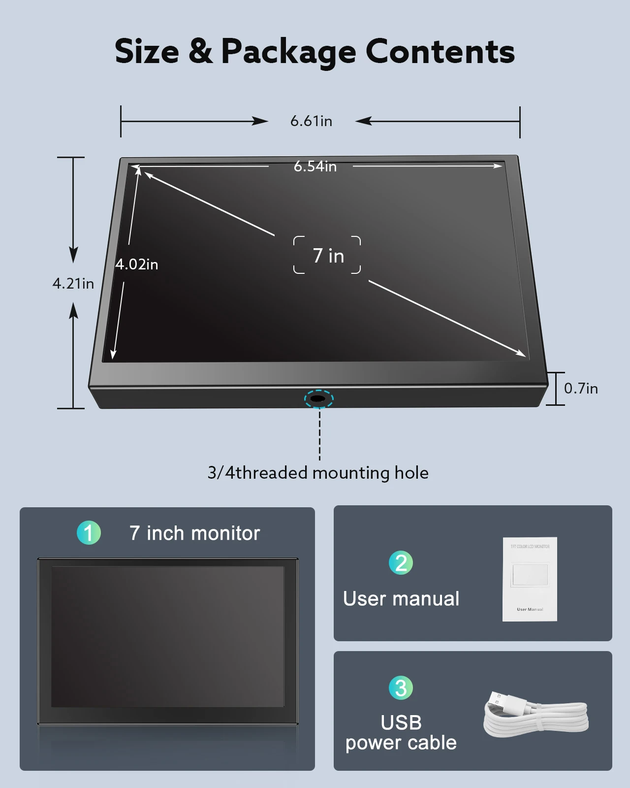 Le ATA-Boîtier D.lique S701H est un mini écran TFT VGA HD 1024×600 de 7 pouces, conçu pour une utilisation dans les voitures. Il dispose d’une entrée vidéo AV et d’une alimentation USB, ce qui le rend facile à utiliser. Son angle de vision large de 140 degrés et sa résolution élevée permettent d’obtenir une image claire et nette. De plus, il est portable et peut être facilement transporté n’importe où. Il dispose également d’un haut-parleur intégré pour un son clair et d’une ligne croisée pour faciliter la mise au point. Le trou de montage fileté à 1/4 permet de le fixer sur un support compatible.