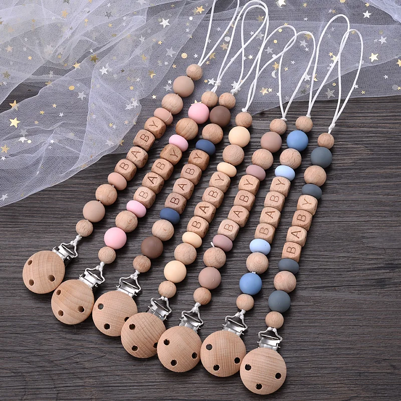 L’attache-tétine en silicone avec nom personnalisé pour bébé est un accessoire pratique et sûr pour votre enfant. Fabriqué à partir de perles en bois de hêtre et de silicone de qualité alimentaire, il est sans danger pour les bébés.