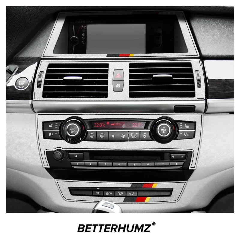 Les autocollants de cadre de garniture de panneau de CD d’aération de navigation de console centrale en Alcantara sont des accessoires de voiture spécialement conçus pour les BMW X5, E70, X6, E71. Ils sont fabriqués à partir de matériau Alcantara de haute qualité et sont disponibles en noir et gris.