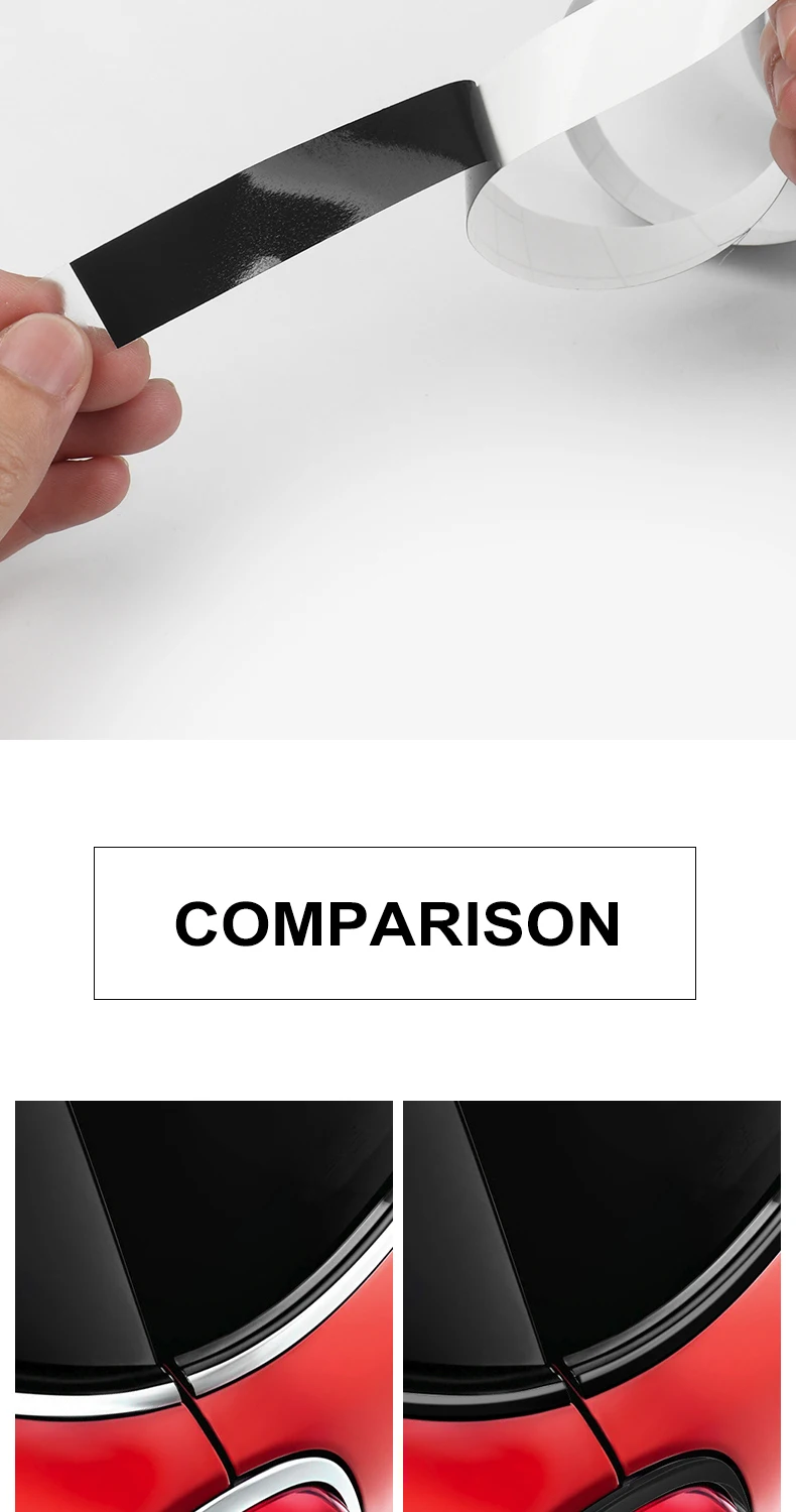 Les avantages de cet autocollant en film vinyle pour la garniture de fenêtre de voiture sont sa haute qualité et sa surface lisse. Il est également très flexible, ce qui lui permet d’être appliqué sur des courbes modérées ou des surfaces planes lisses. De plus, il peut être étiré avec la chaleur pour une installation plus facile. Un autre avantage est qu’il convient à tous les Mini Cooper.