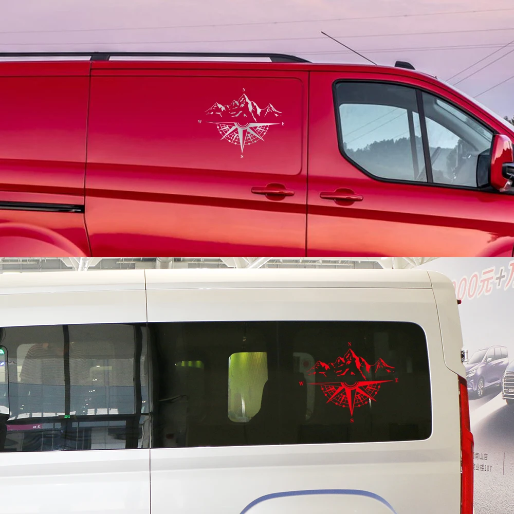 - Autocollant de style boussole de montagne graphique pour camping-car