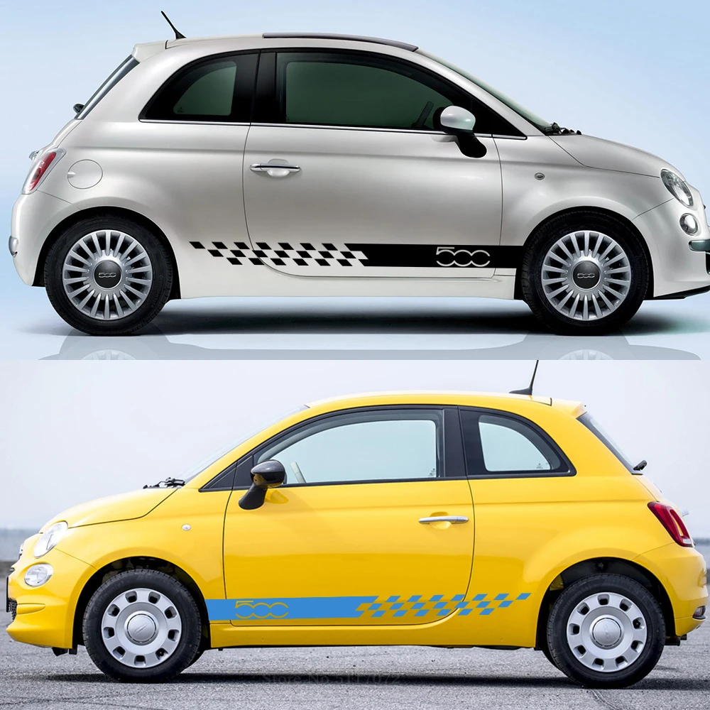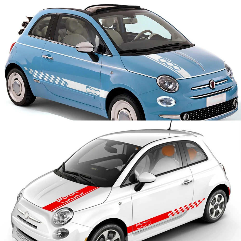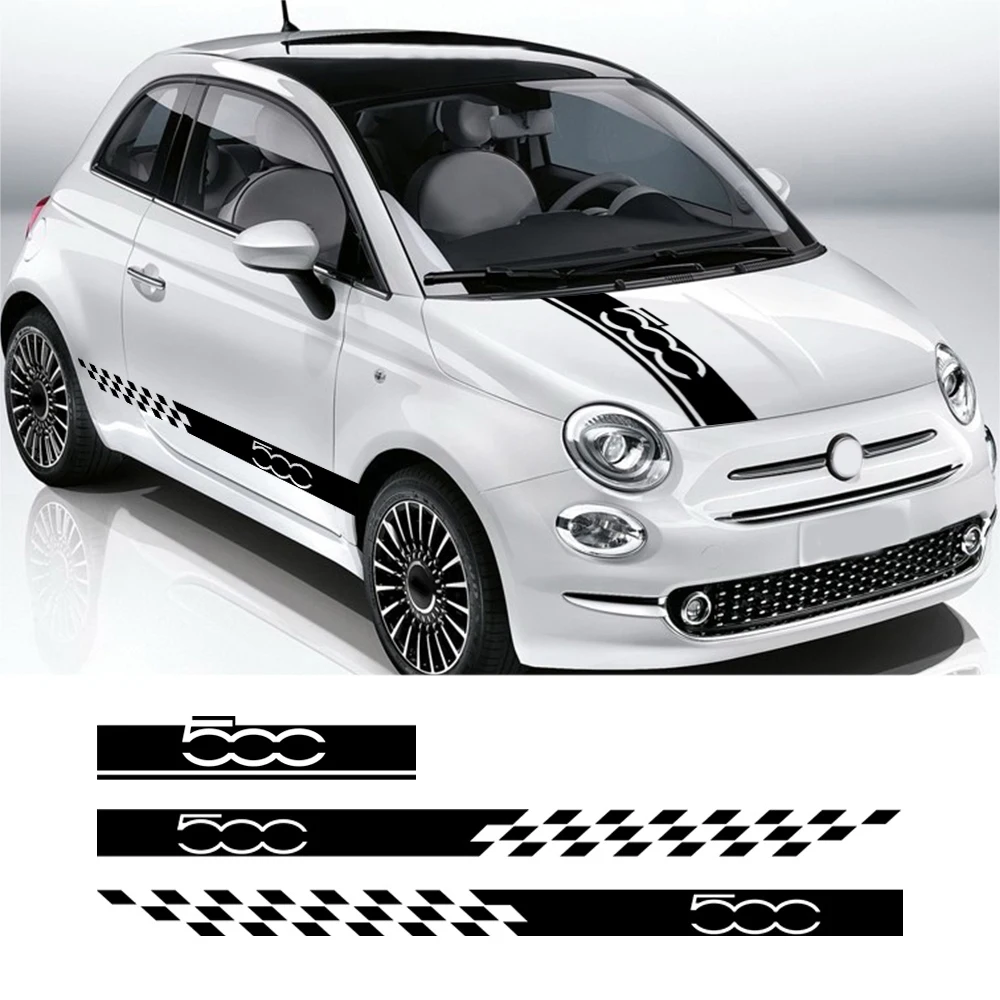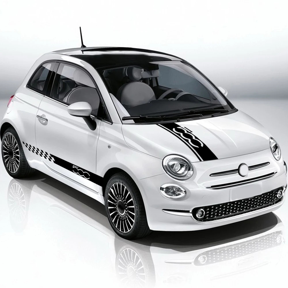 Les autocollants à rayures pour capot de voiture, couverture de jupe latérale de porte sont des accessoires extérieurs en vinyle conçus pour la Fiat 500. Ce produit est composé à 100% de PVC de haute qualité.