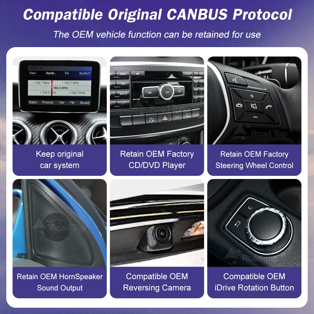 | Compatibilité | Prend en charge les systèmes d’origine Mercedes Benz NTG et Android |